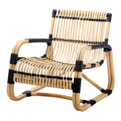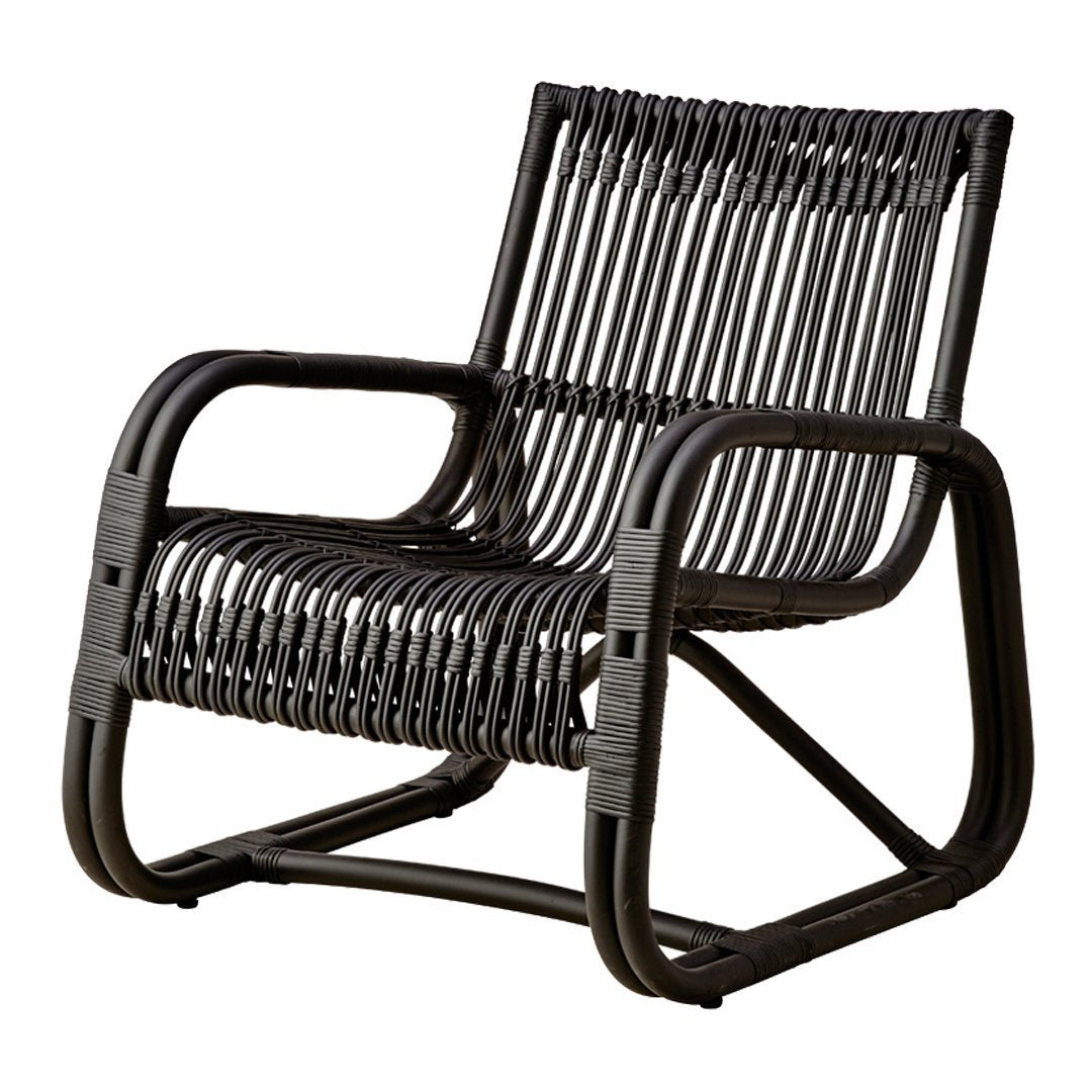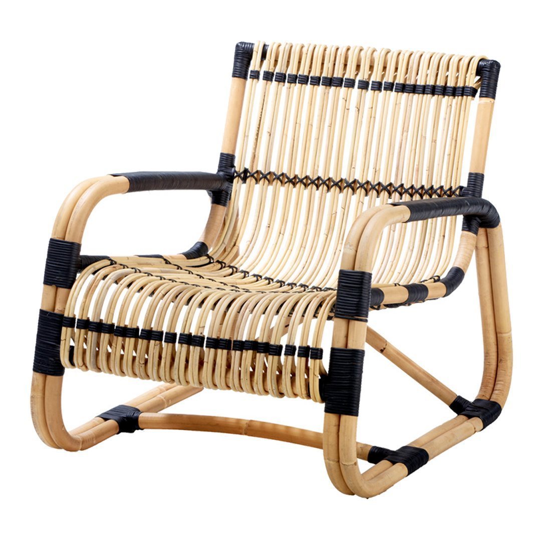 Curve is an unusual lounge chair, and a sure eye catcher, shaped from sustainable natural rattan with black bindings – lightweight yet strong and with a unique sculptural look.
