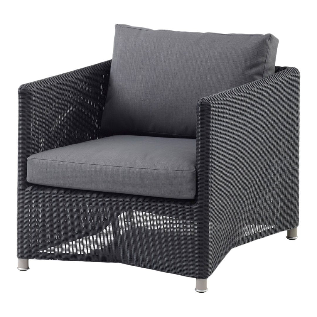 The Diamond lounge chair with a luxurious Sunbrella cushion i grey excels in both design and comfort. Similar to other Diamond Lounge items, the Diamond Lounge garden chair is designed by Foersom + Hiort-Lorenzen, a fact that is mirrored in the minimalistic design and subtle colour of the materials. Due to the high quality of the tex material or graphite weave, the Diamond Lounge chair can be left outside all seasons, and is maintenance free.