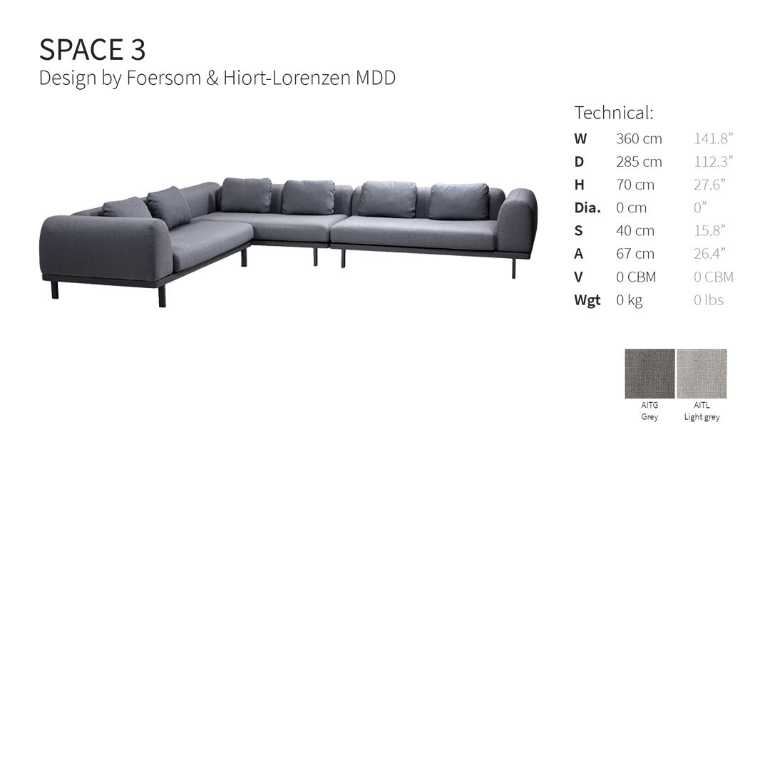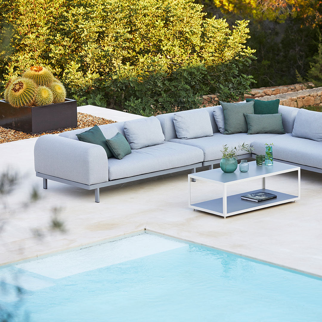 Space is a lounge concept in a modern and Scandinavian design. The concept adds a new dimension to modular lounge sofas where one is capable of changing materials and functions and thereby the look. Space can stand as a lounge sofa, but one can also change the back and side modules into tables, so the lounge sofa can even change into a sunbed. The table plates are of either certified teak or solid surface material, the fabric is the soft and comfortable Cane-line AirTouch. This innovative and contemporary lounge concept is designed by the Danish design duo Foersom & Hiort-Lorenzen MDD.