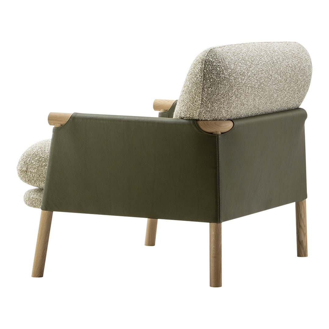 The chair is built around a solid wooden core, which is enclosed by thick leather of the finest quality. The leather detail creates a beautiful frame around the soft handsewn seat and back cushions.