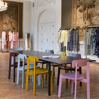 The seat is neat, precise and no-frills, with a crisp, beach-friendly curve. A touch eccentric yet witty, fresh and confident, this is a hard-working, cheerful and characterful chair that would sit just as comfortably in a busy restaurant or café as in a kitchen or dining space at home.
