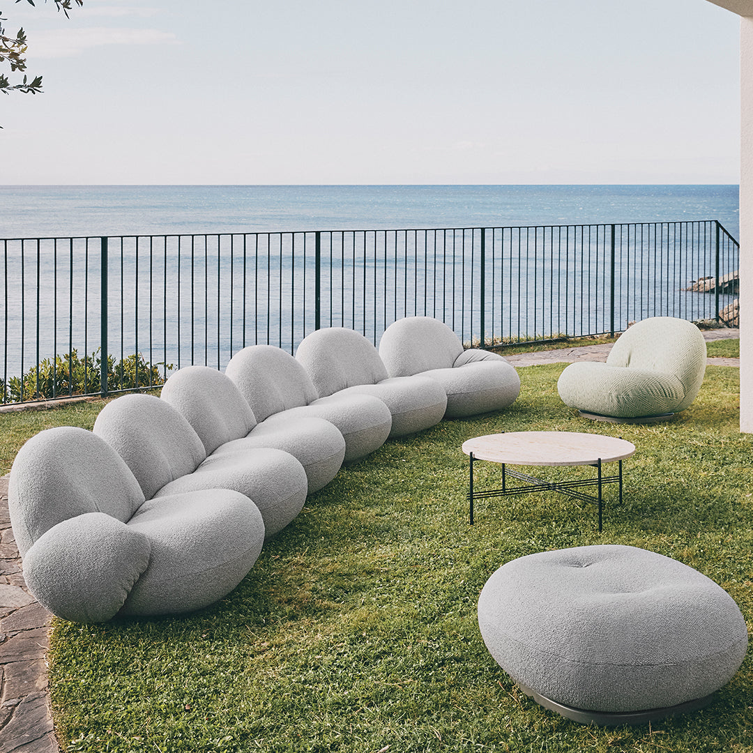 The TS Collection is already well known and appreciated among design lovers for its ability to suit any interior and setting. Now, the black-based TS Side and Coffee Tables are getting the outdoor treatment. The luxurious tabletops, in beautifully veined white travertine, complement the sharp, geometric bases in powder-coated stainless steel, and enable the collection’s stylish interior aesthetic to cross the threshold into the open air.
