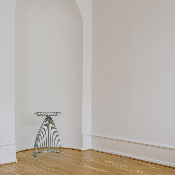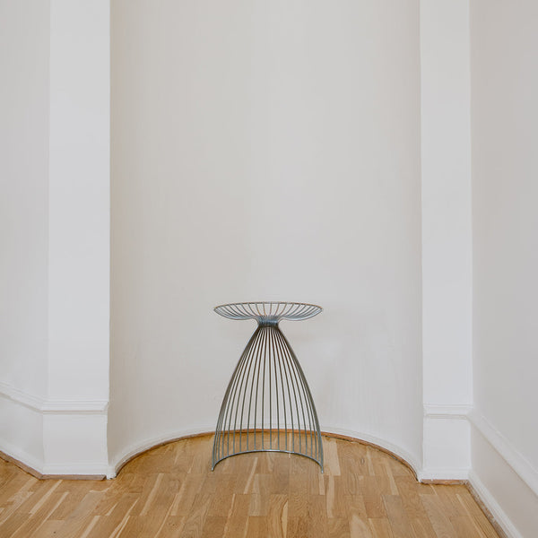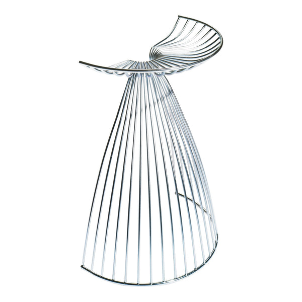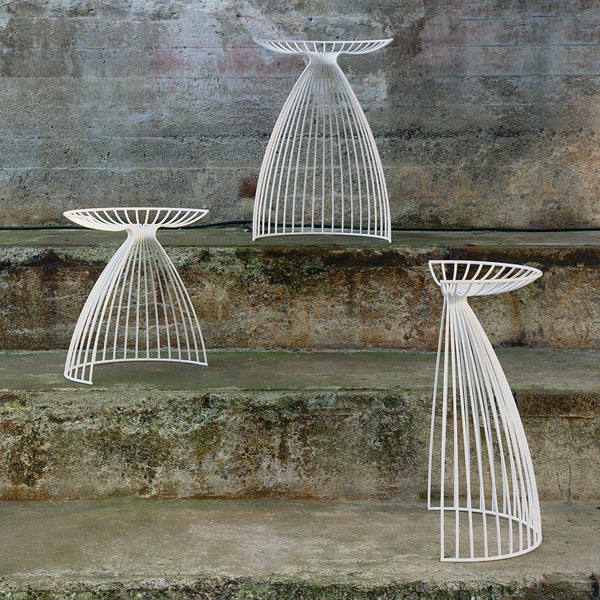 A sculptural bar stool with a poetic shape evoking an angel with its wings widely spread. The Angel stool consists of a minimalistic seat and a base of steel rods. It is a decorative yet comfortable piece, that can be used as either a bar stool or a freestanding, agile, sculptural object to decorate indoor or outdoors. Angel is the perfect example of efficient use of eco-design strategies: it is made of one single material, making it easy to recycle while minimizing the number of links in the supply chain. This also makes it easy to recycle.