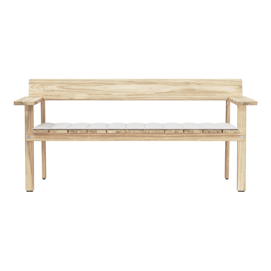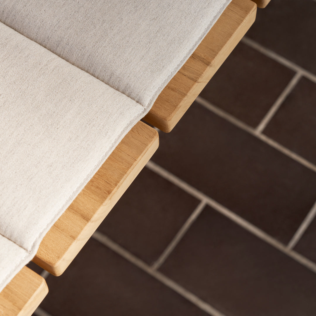 The non-slip cushion for the GL101 Timbur Outdoor Bench is designed to add extra comfort. The padded cushion is upholstered in Agora Life textile, a weather-resistant and recycled fabric and features visible seams which align with the width of the wooden slats to ensure a clean and balanced design. The fabric has a fluorine free finish and a high degree of durability.