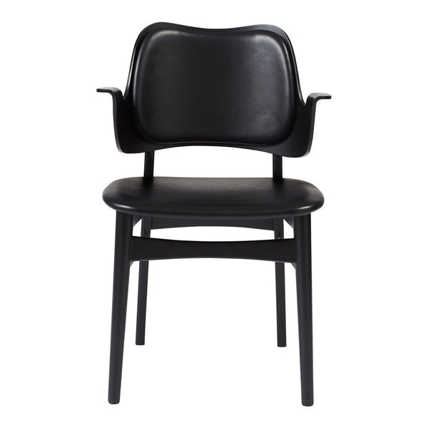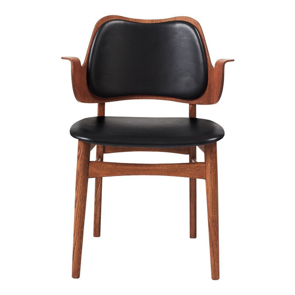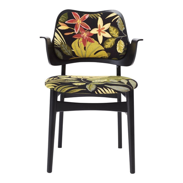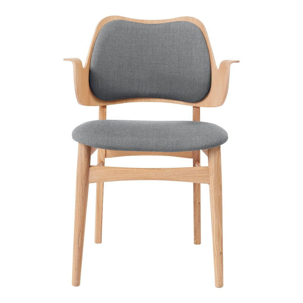 This beautiful, moulded Gesture chair, designed in the 1950s, was the work of the acclaimed Danish architect, Hans Olsen. With its welcoming design, the Gesture chair creates a warm atmosphere around a dining table or at a desk in the living room, where it does not hurt if a chair is something special. The armrests invite you to sit down and relax in the moulded design and are also constructed so you cannot get too close to the table. Gesture is a designer chair with a certain weight, offset by its light, playful charm. As a tribute to the 1950s’ adoration of colour, the Gesture chair is available in an abundance of stunning colours in three versions: fully upholstered; with upholstery on the seat; or a unique type of wood depending on the look you after. Choose from high quality leather or several different exclusive fabrics in the most beautiful colours from the Warm Nordic universe. The frame is available in several exclusive types of wood and a variety of surface treatments.