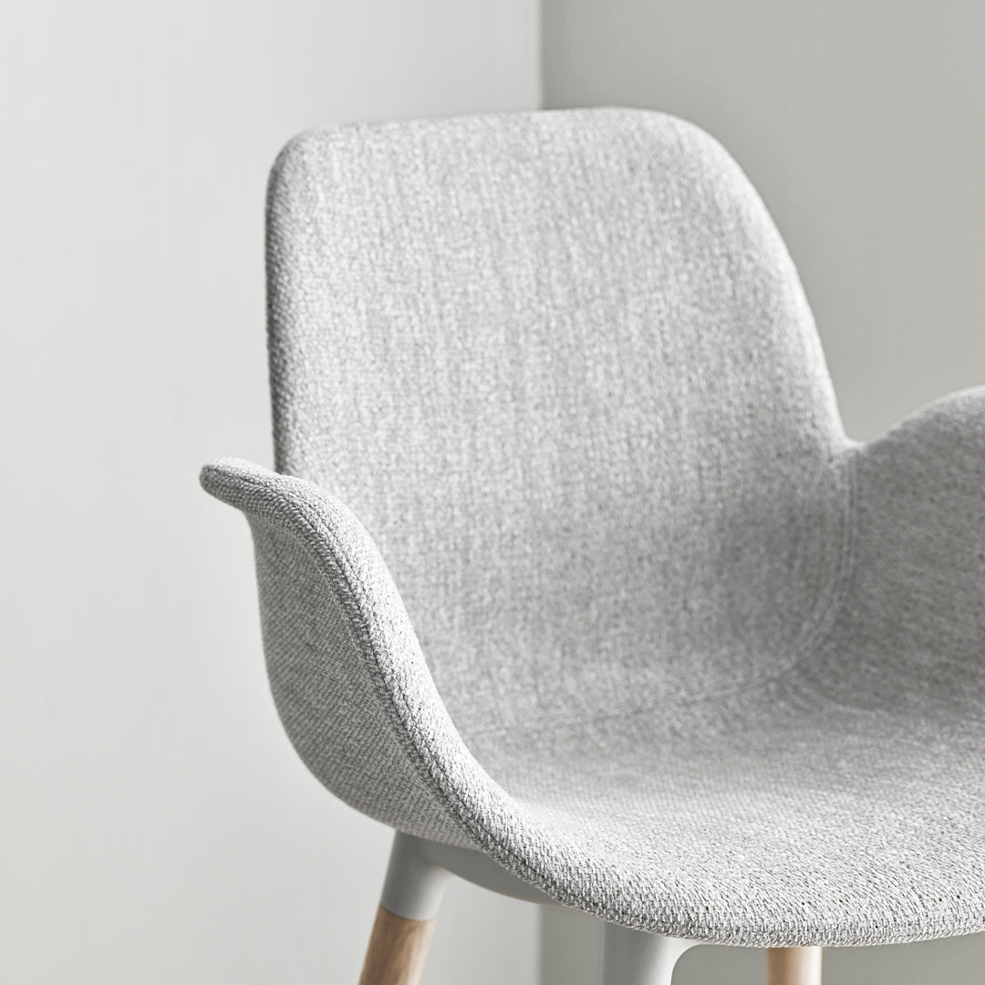 Questions about the Seed Dining Armchair - Upholstered - Oiled Oak Base, White Pigmented?