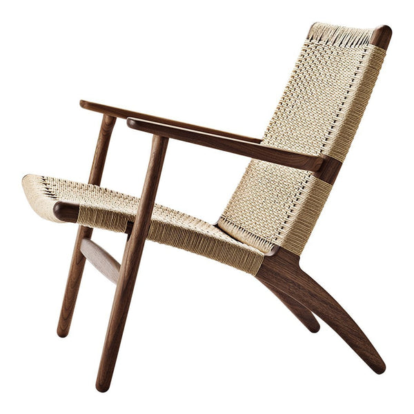 Hans J. Wegner's CH25 Easy Chair's special leg profile probably give this Wegner classic chair its most distinctive feature. The broad armrests add to the comfort of the CH25 chair and make this Wegner chair easy to get up from, even with its low seating and reclining back.