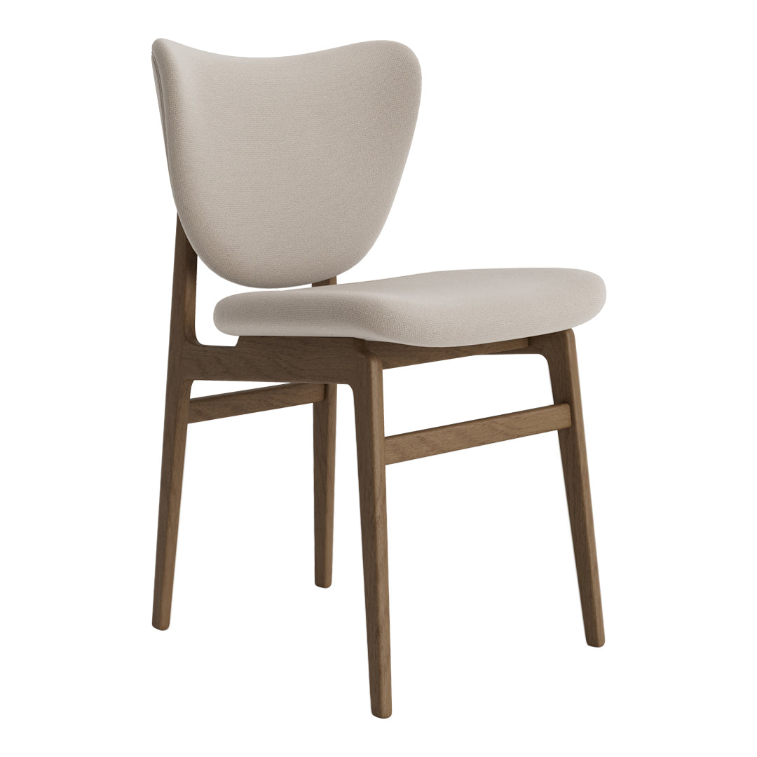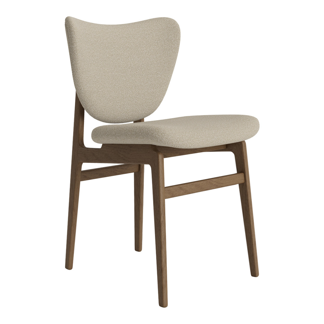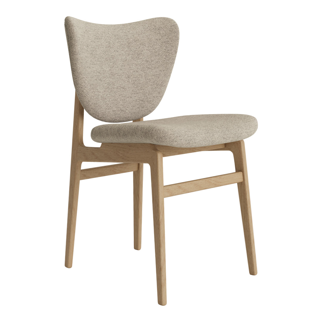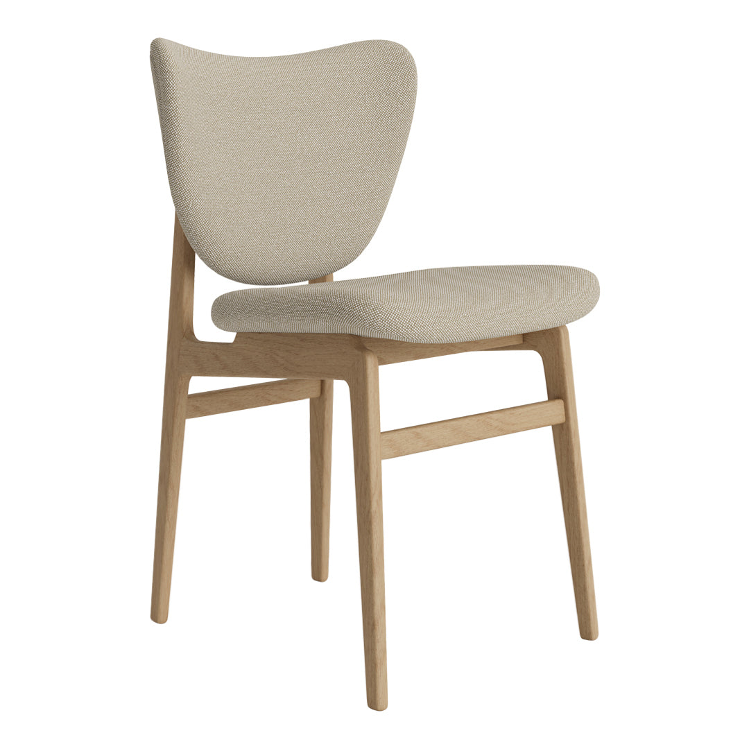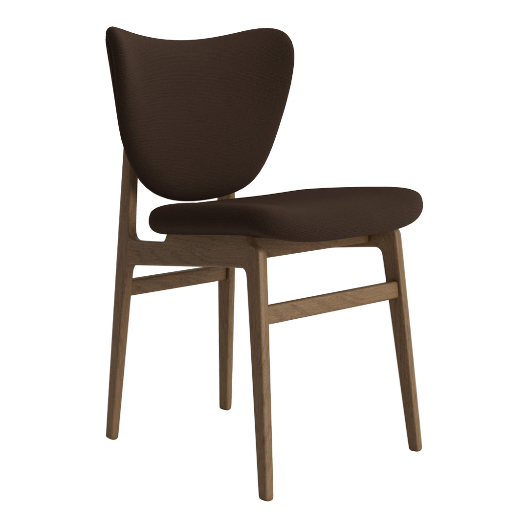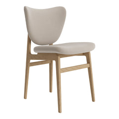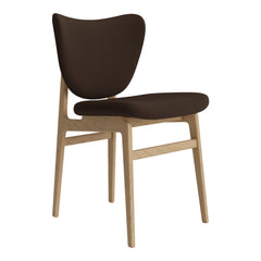 Elephant Dining is produced with solid oak legs, with back and seat in laminated oak veneer. The seat and the back are upholstered in leather and textile of highest quality, and the refined 25 mm foam blend provides superior comfort. The upholstery gives the chair a solid look, which is contrasted by the slim contour of the veneer edge. "Elegant, simple but sturdy without being clumsy".