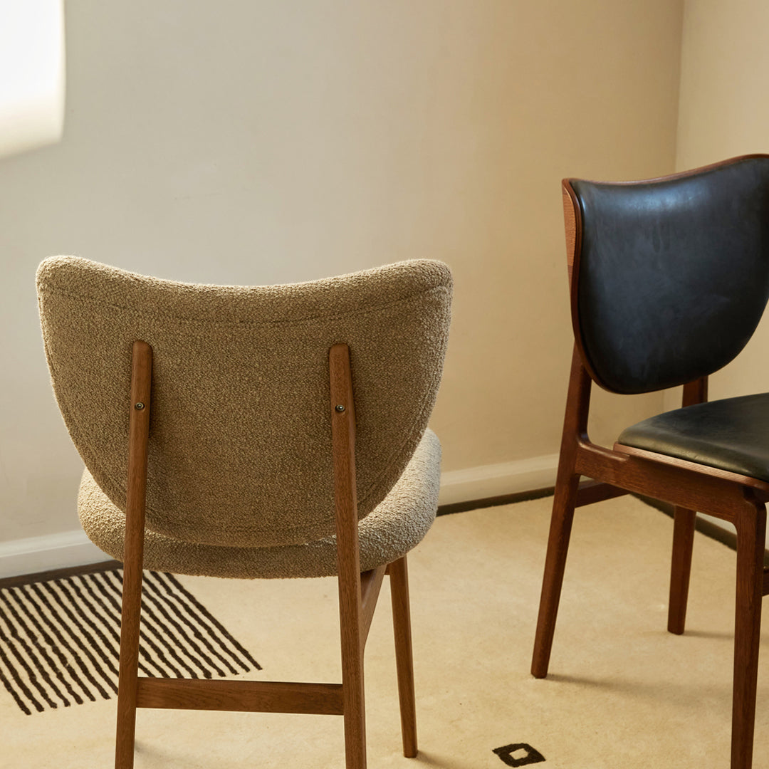 The Elephant Dining Chair is a dining chair version of the popular Elephant Lounge Chair. The legs are shared with the proven NY11 Dining Chair while the seat and back are pressed in the same soft curve as the Elephant Lounge Chair. The result is a light and elegant dining chair where the Elephant ear shaped back gently curves around the body.