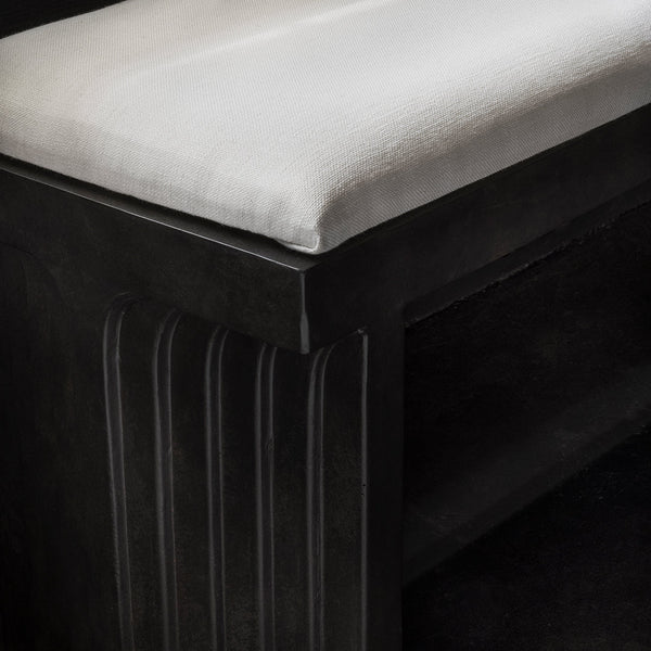 As an ode to the Art Deco period, Arc is a transformation of lavish architectural details into a collection of minimalist furniture. Featuring a Console and Bench, Arc is characterised by steps and arches, creating a certain depth and play of shadows. Made from a base of fiber concrete, the Arc Console features a tabletop of exquisite marble, emphasising the rich and beautiful patterns of natural stone. The polished surface softly reflects light, adding a warmth to the Arc Console. Arc Bench is made entirely from cast fiber concrete, with the option of adding the Arc Bench for increased comfort. The rectangular Arc Bench is made of foam with linen fabric in the color chalk, creating a beautiful contrast between the smooth concrete surface and the tactile cushion. Designed by Kristian Sofus Hansen & Tommy Hyldahl.