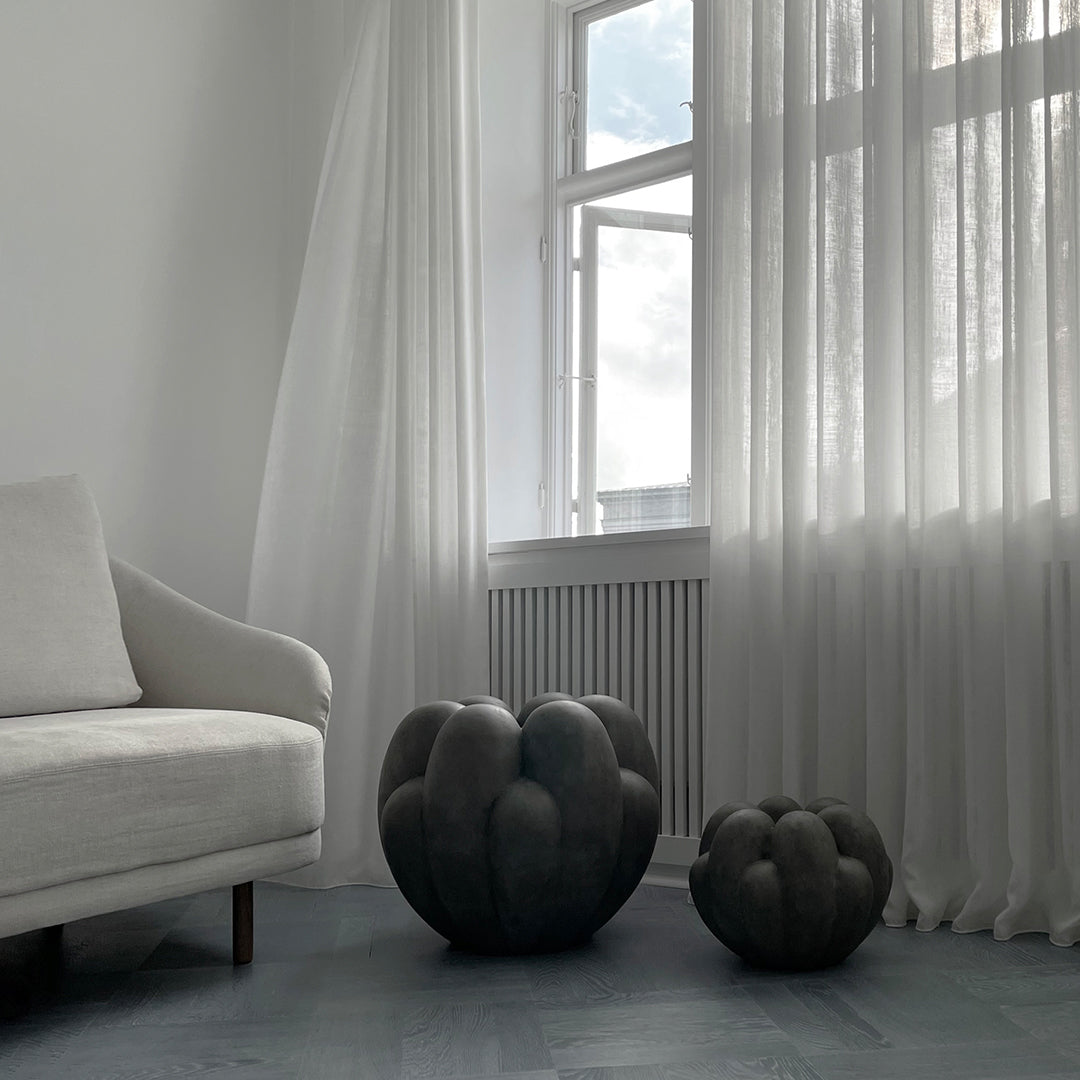 Inspired by floral shapes, Bloom emphasizes soft and organic shapes into a collection of sculptural ceramic vases and bowls. Elegantly sculpted, each Bloom ceramic is characterized by several flower leaves fading into each other, reminiscing the different stages of a flower from closed to open. Bloom is an interpretation of 70s floral inspired design. But with a more raw and clean expression. The smoothly curved surface is contrasted by a strong underlying geometry and is enriched by a beautiful play of shadows around the depths of the surface. Due to its expressive design, the Bloom vases changes experience throughout the day, according to the position of light and shadows. Bloom comes in both vases and bowls and is made from ceramic or fiber concrete. The surface is hand glazed in order to achieve the unique surface texture. The colours may vary slightly, due to that it is a handmade product. The vase is not 100% waterproof, therefore a bag for fresh flowers is included. Designed by Kristian Sofus Hansen & Tommy Hyldahl.