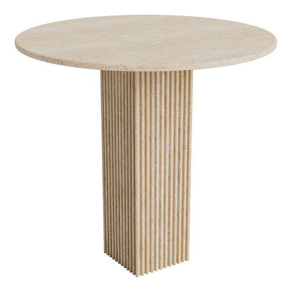 Rich on architectural references, the Soho collection reminisces architectural building facades to create a vertical and slim table design. The fluted surface of natural stone adds a tactile feeling, while shadows changes depth and character of the stone surface throughout the day.