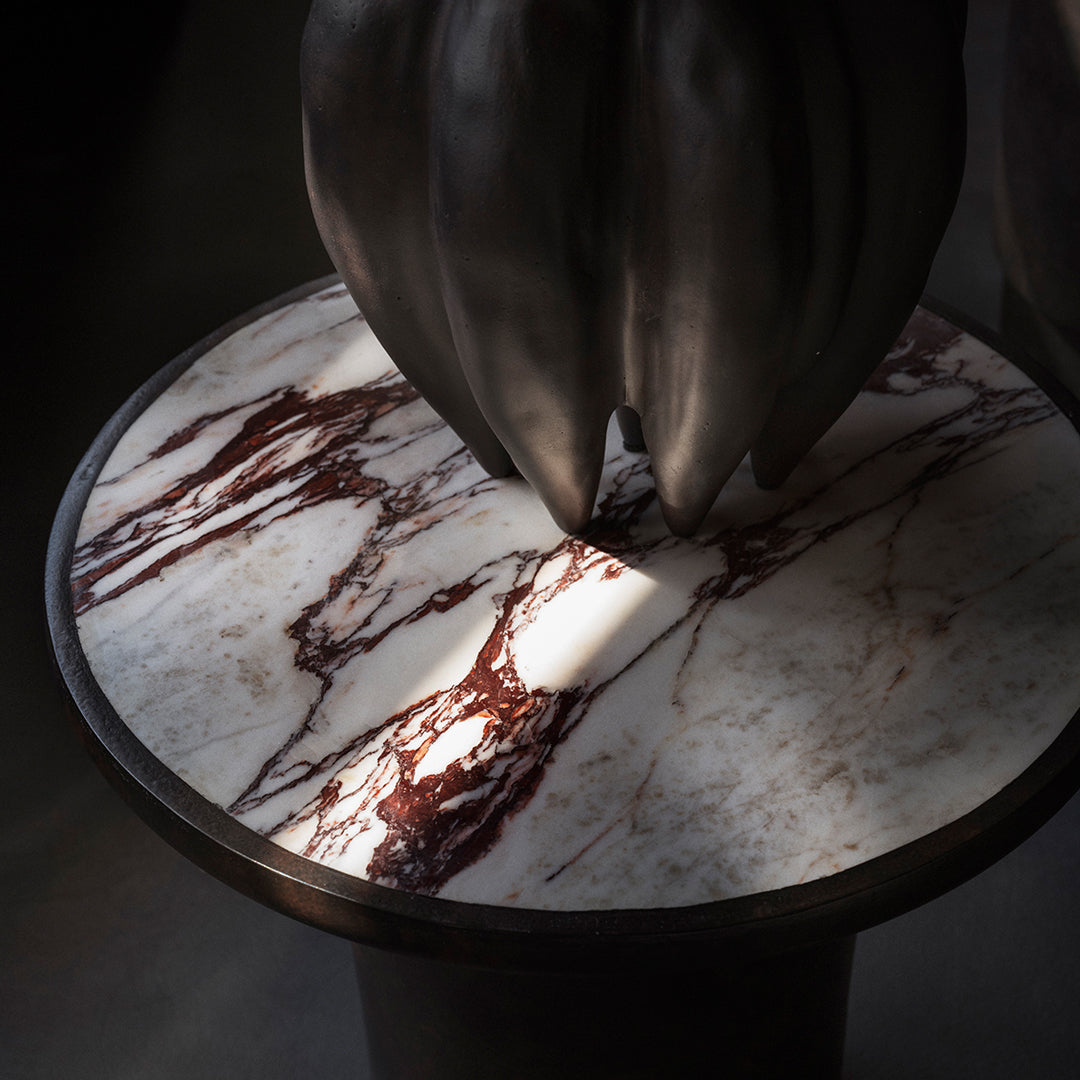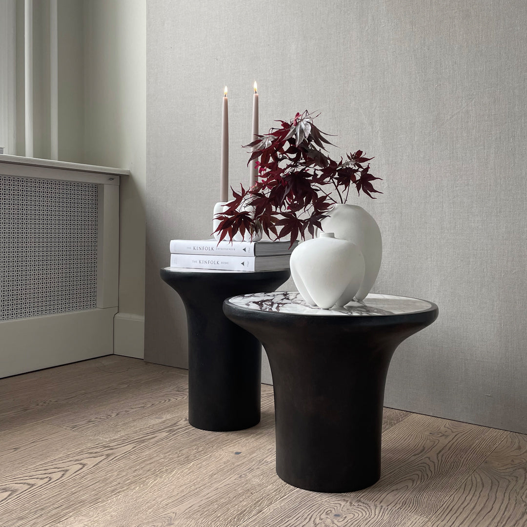 Inspired by Brutalism Architecture from the 1970’s, the Trumpet Tables are designed as a trumpet shape with a soft curve and a circular tabletop. Trumpet is all about clean geometric shapes and embracing the beauty of natural materials. Made from a base of fiber concrete, the Trumpet tables features a tabletop of exquisite marble, emphasising the rich and beautiful patterns of natural stone. The polished surface softly reflects light, adding a warmth to the Trumpet tables. Designed by Kristian Sofus Hansen & Tommy Hyldahl.