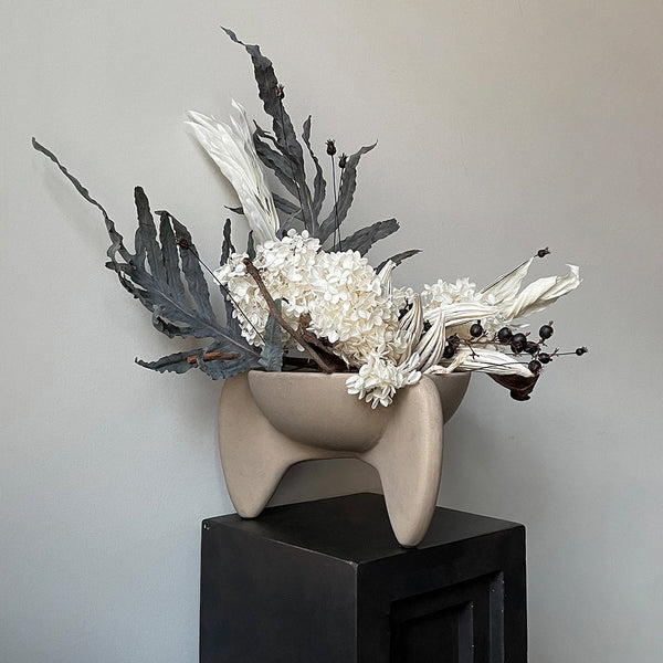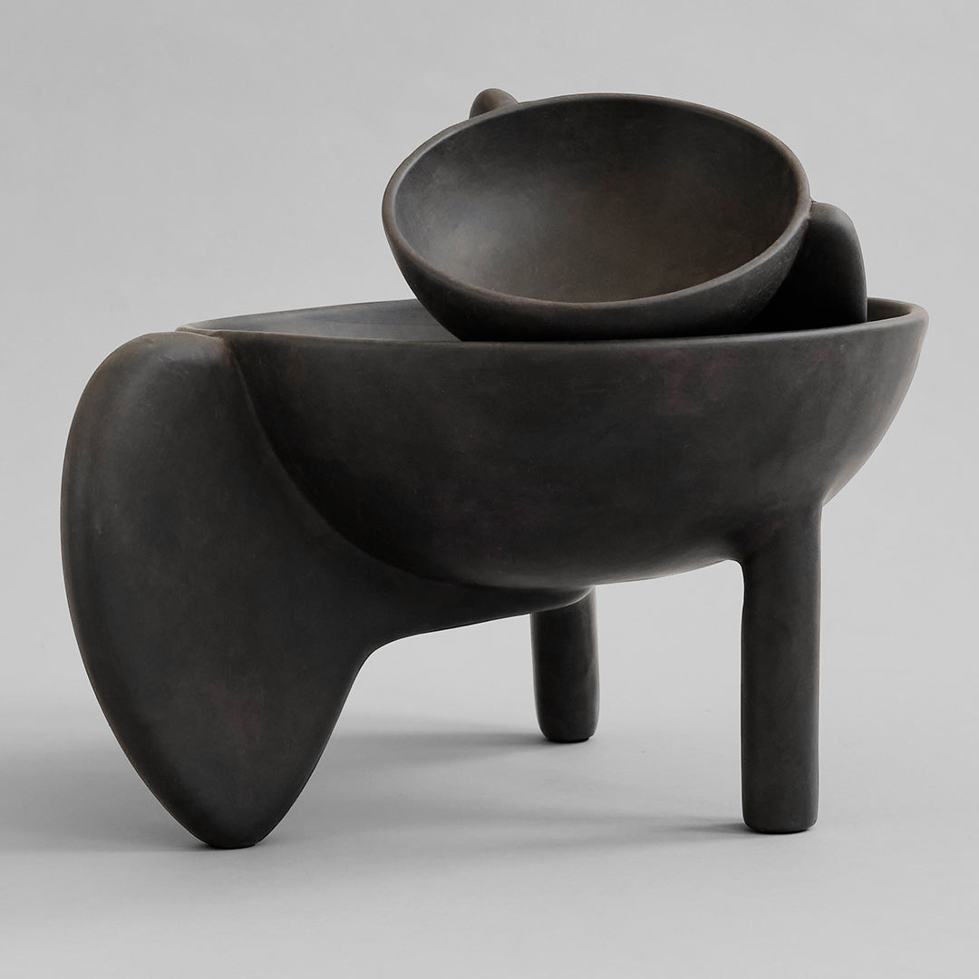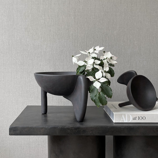 It is all about gravity and a sense of floating through the air. Wing is a sculptural collection of bowls that makes one want to be lifted into thin air even though its presence is very much grounding as well. The silhouette is made up of two wings and a single cylinder-shaped leg as a steady contrast. The bowls are casted in a lightweight fiber concrete. Use Wing as a container or as a standalone art piece on the table. Note that it is not 100% waterproof. Designed by Kristian Sofus Hansen & Tommy Hyldahl.