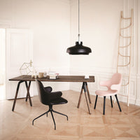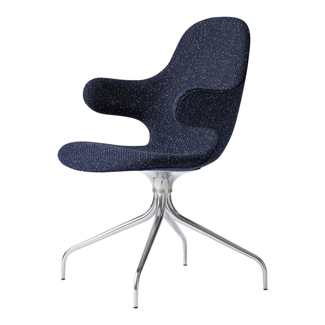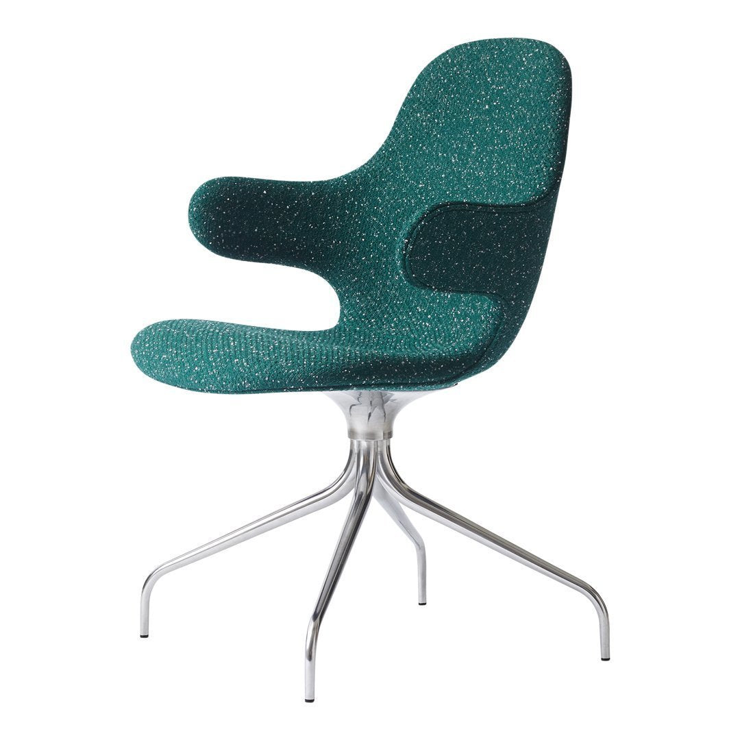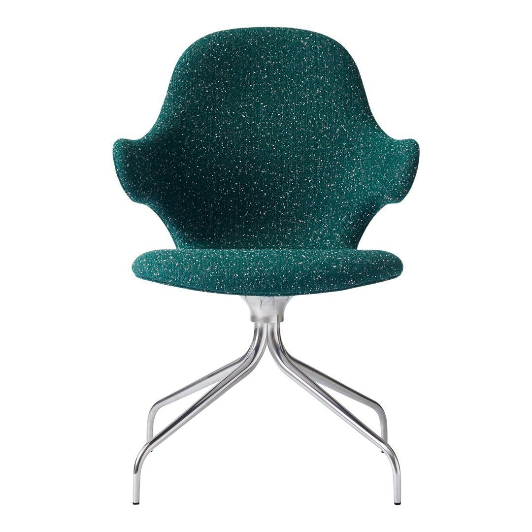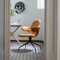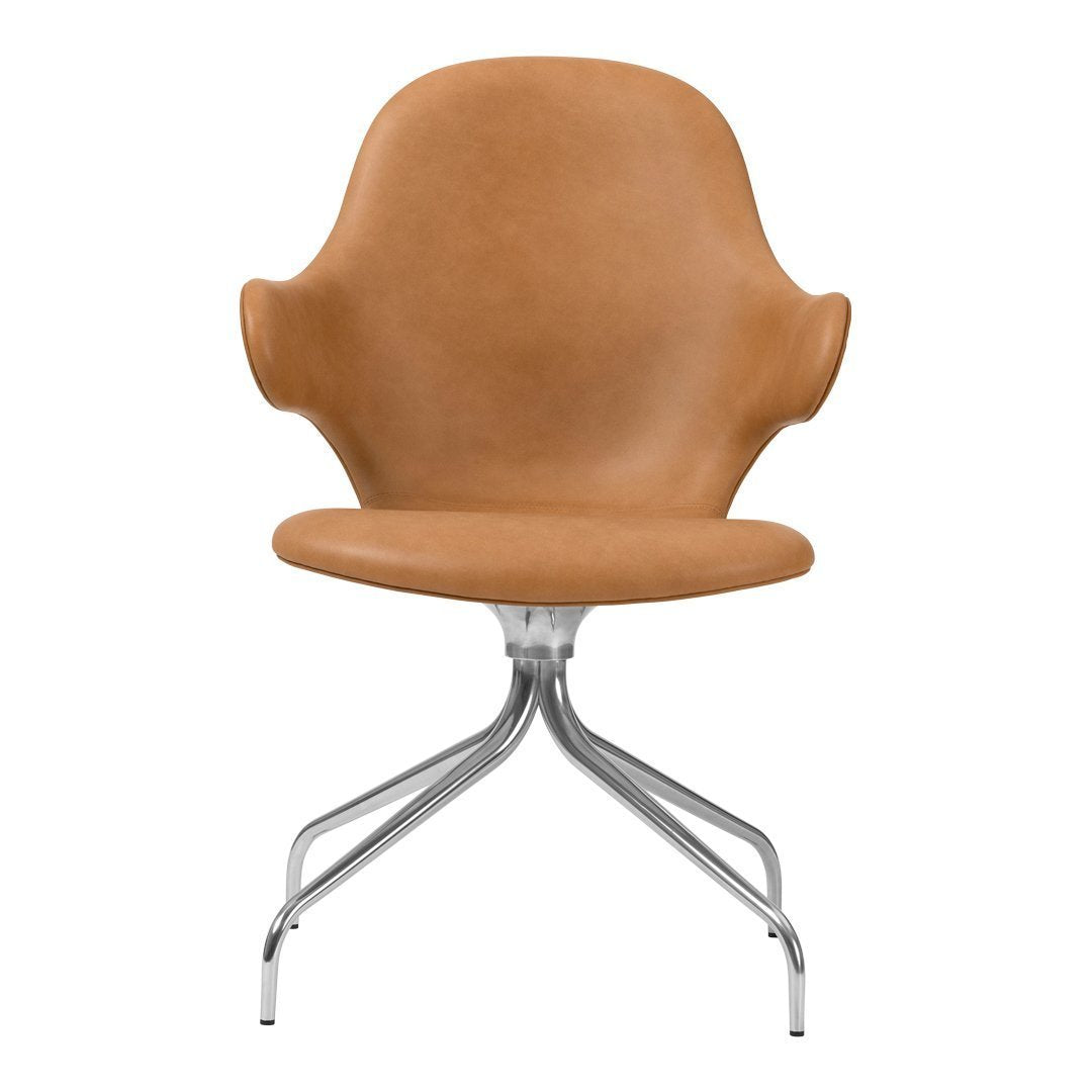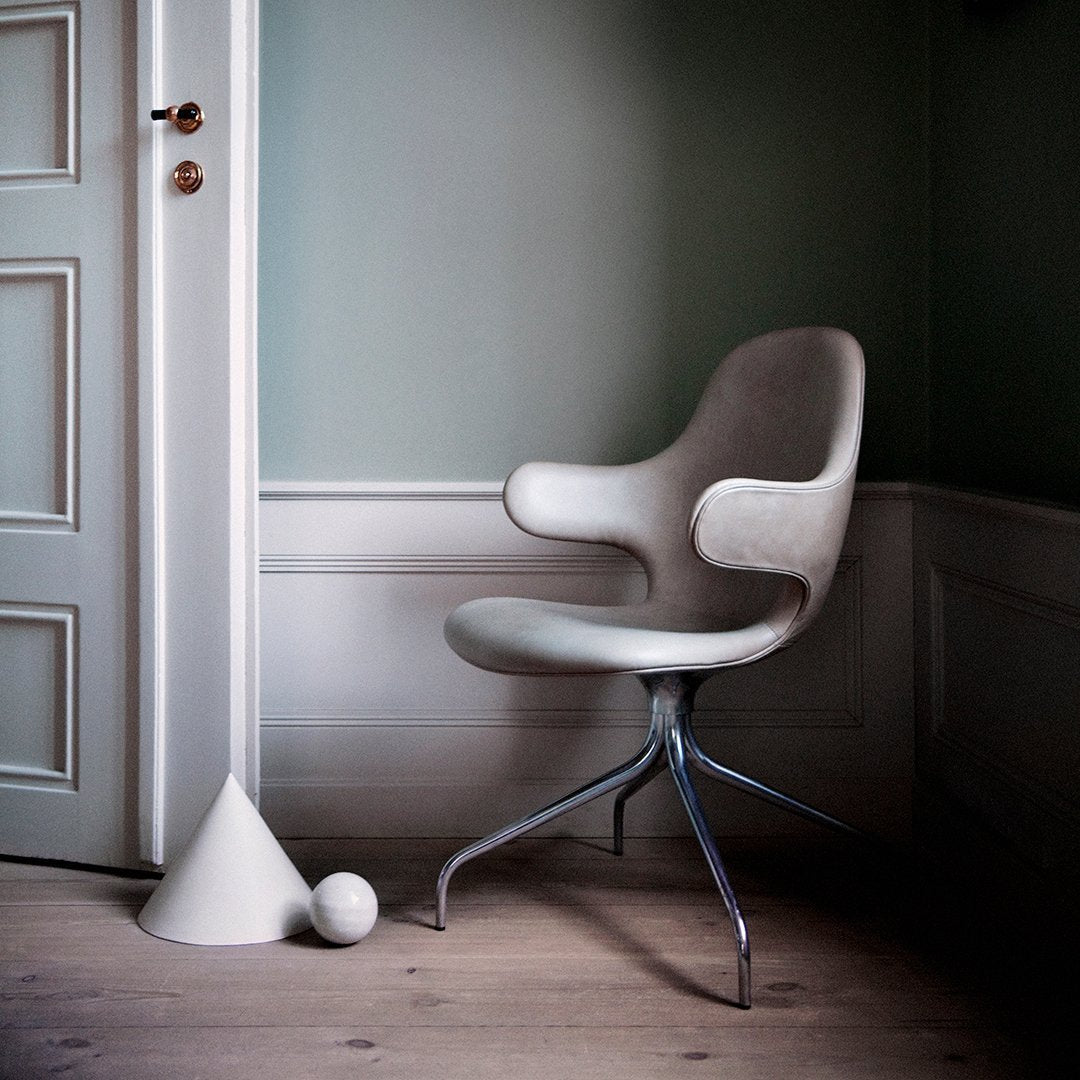 Now &Tradition is introducing CATCH CHAIR in a new swivel base edition, making the comfortable chair even more flexible and suited for the contract and conference market. The new swivel base enhances the chair's light and playful expression and serpentine lines and acts as the perfect base for the high quality shell. The swivel base is in cast aluminum and the shell is made from molded polyurethane foam with a metal frame and glass fiber reinforcements. Covered in cold cured foam, and finally, leather or textile upholstery, the shell offers comfort and great variability.