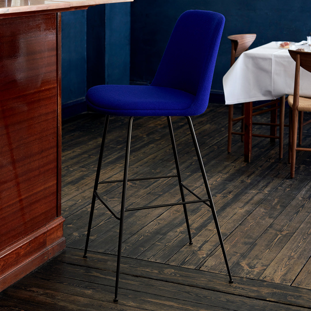 The addition of the counter stool and chair, and the bar stool and chair (HW81 – HW100) has expanded the series with designs suited for an office workspace or hospitality venue. Compact and comfortable, these pieces feature the signature, recycled plastic shell. Upholstery is also available, while the steel tube legs come in black or bronzed.