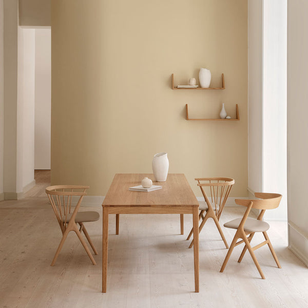 Sibast Dining Table No 2 takes its inspiration from the side table No 1 by Helge Sibast designed in the late 1950s. It is designed by Anna and Ditlev Sibast together with the daughter of Helge Sibast, who like the father, is a skilled architect, cabinet maker and the mother to Ditlev Sibast. They designed the table with a clear vision to create a simplistic and sustainable dining table which matches the design of the chairs by Helge Sibast.