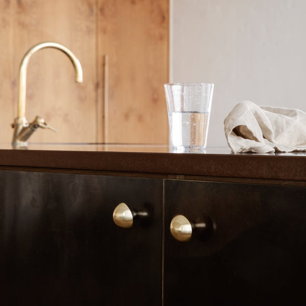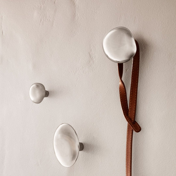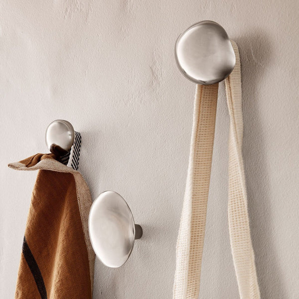Jewelry designer Helena Rohner brings her signature aesthetic to ferm LIVING with a series of decorative objects for the home. Inspired by the gently rounded shape of the lemon with its characteristic tapered ends, this practical hook is sculpted from solid brass with a reflective finish. Originally formed by hand, it brings a human touch to interiors. Use it in the kitchen, hallway, bathroom or bedroom to hang towels or clothes. Engraved with the initials of both Helena Rohner and Ferm Living, the hook comes packaged in a textile pouch.