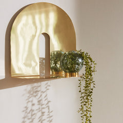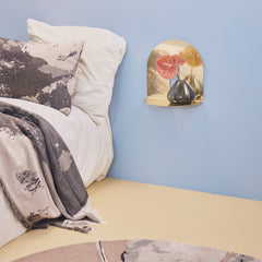 Find yourself drawn by the euphoric divinity, which the German interior designer Henrik Johannes Drecker has captured in the CASTELLUM shelf. The shelf stands as a geometrical, simple piece but has an enormous effect due to the reflective and warm surface of the gold, while the matte black makes an aesthetically present contrast to the golden shine.