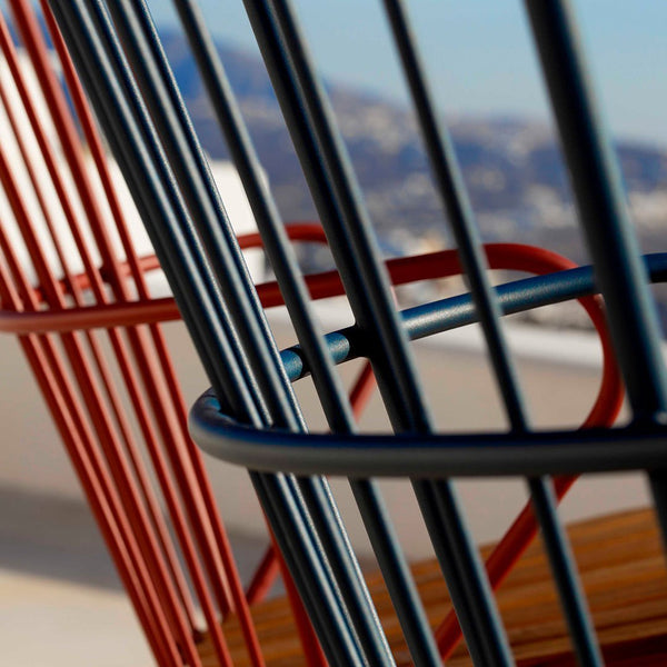 PAON is light Scandinavian in its design but with a touch of French Victorian romance. The PAON line consists of dining chairs, Lounge chair, Rocking chair, a two seater Bench and a Bar chair. Made in powder coated steel combined with beautiful bamboo lamellas.