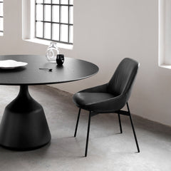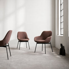 Deriving from the Latin word for ‘pocket’, the Sinum Chair aptly takes up little space in a room – be it the conference room, the hotel room, or the dining room. The seat is characterised by a curved pocket of padding, ensuring uncompromising comfort, enclosed by armrests sloping upwards to the backrest, featuring distinct pleated detailing.