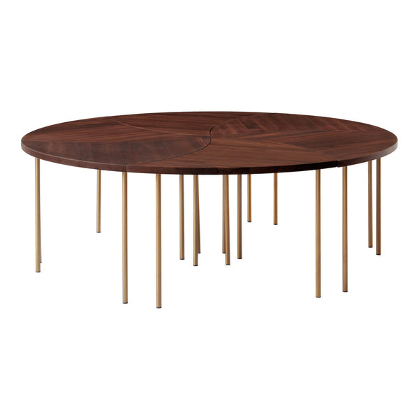Designed to be adaptable, this table can be creatively refashioned to suit all sorts of living arrangements: Pinwheel can exist as several bijou tables placed throughout the home, utilized together as a console, or even configured into the shape of a snake or a flower.