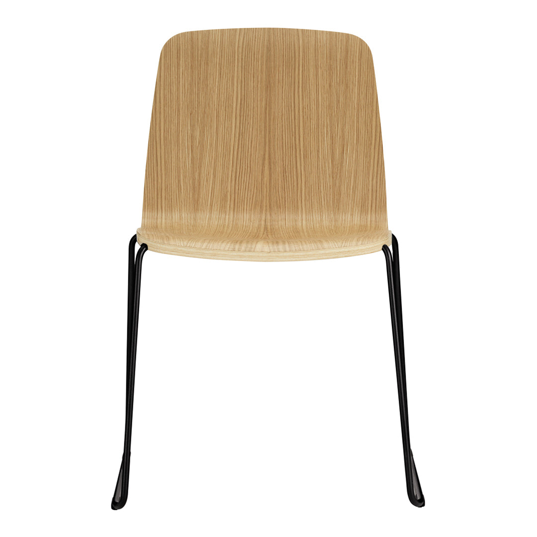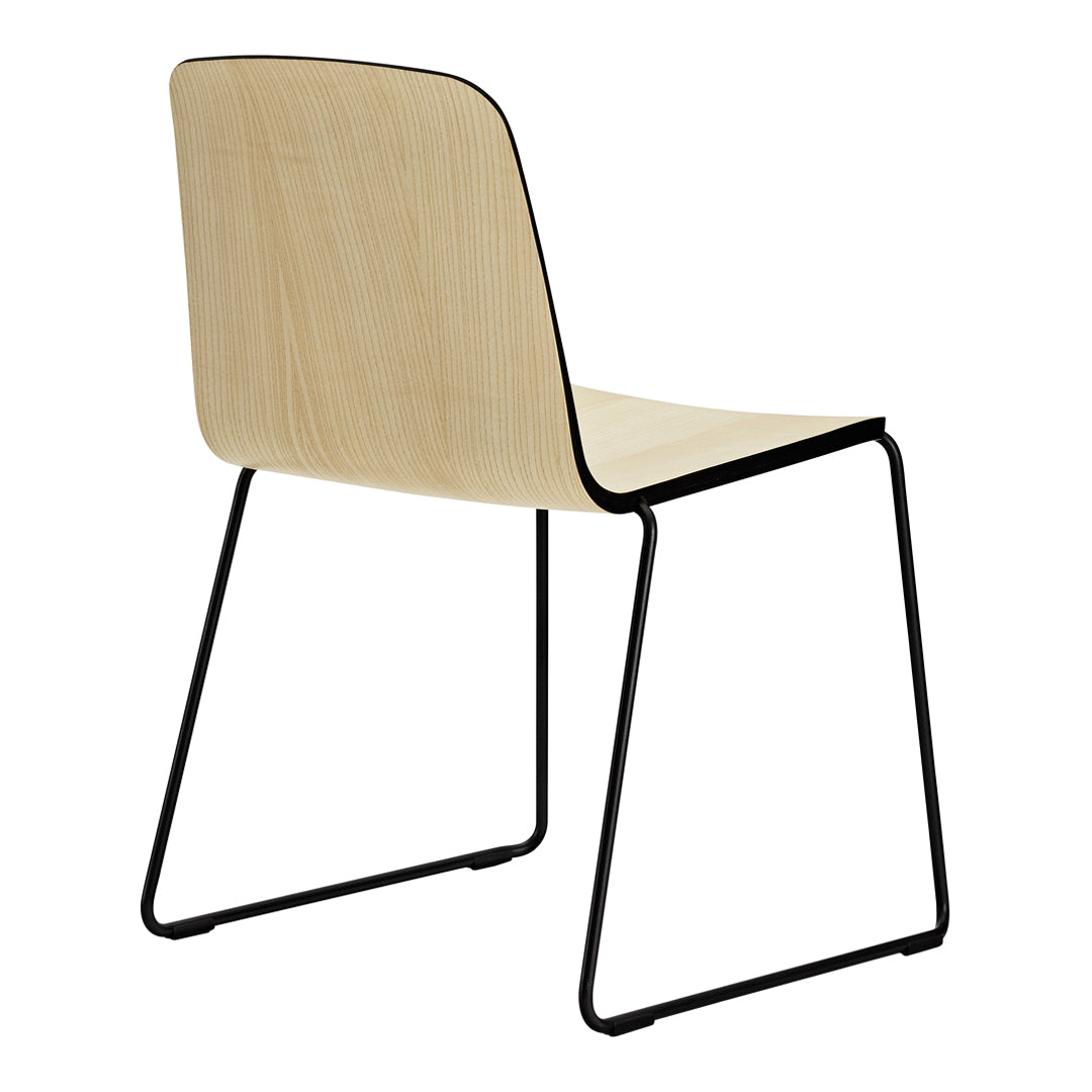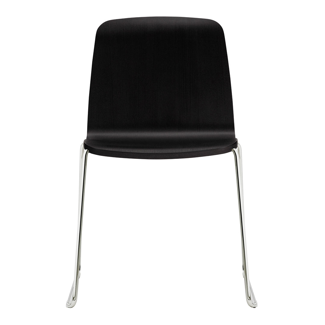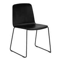 Just is a simple and understated stackable shell chair with lots of personality and character that is as beautiful when seen from below as from above. The frame is discretely tucked into the chair's molded shell, and the shell's tapering thickness gives it a friendly and welcoming expression. Just Chair comes in a veneer version in a distinctive black or in natural, with a striking colored edge in black, red or grey. Just Chair is also available with upholstery in quality four textiles and durable leather, adding a whole new dimension to the chair. The chair fits into most furniture schemes, and is ideal both around the dinner table and in the kitchen.