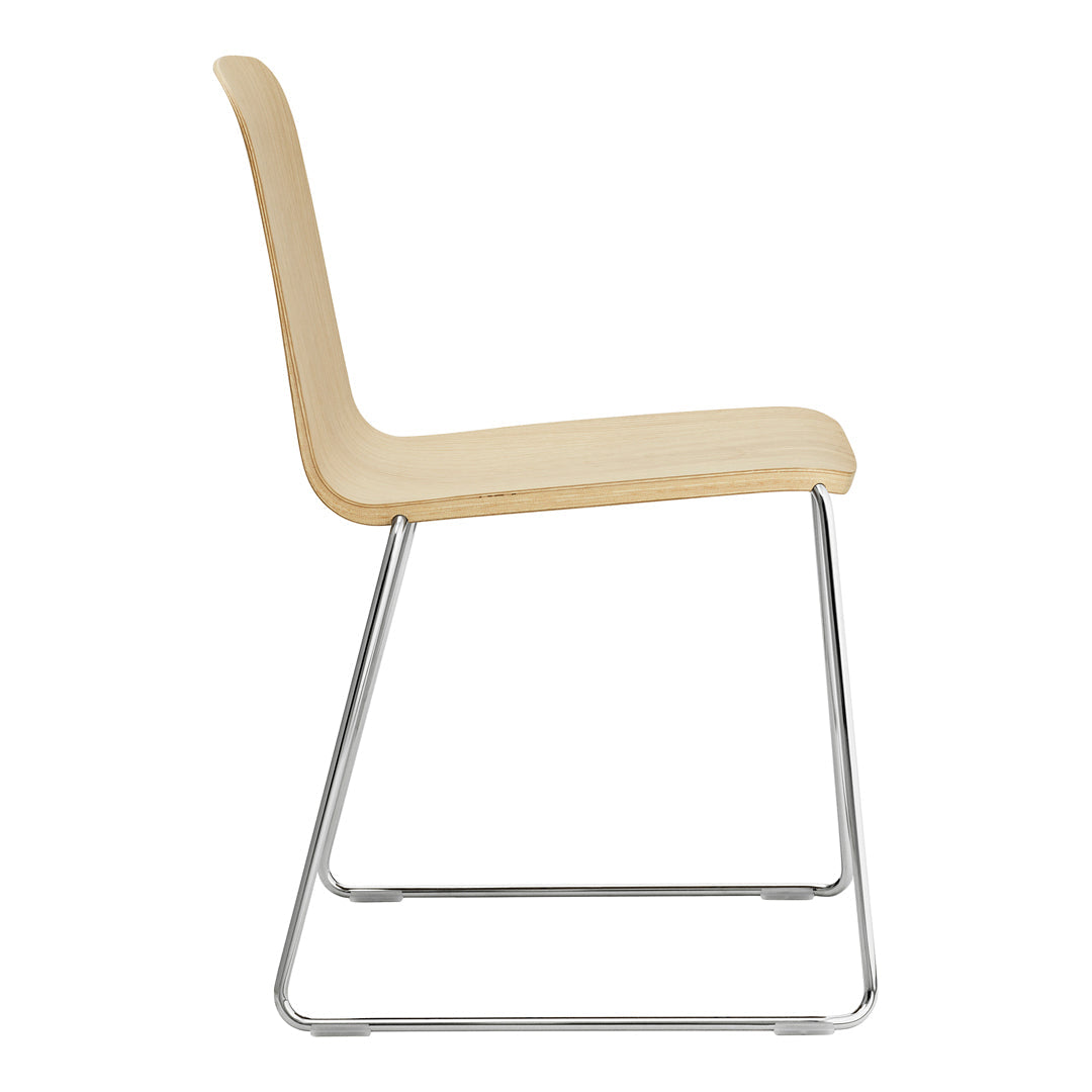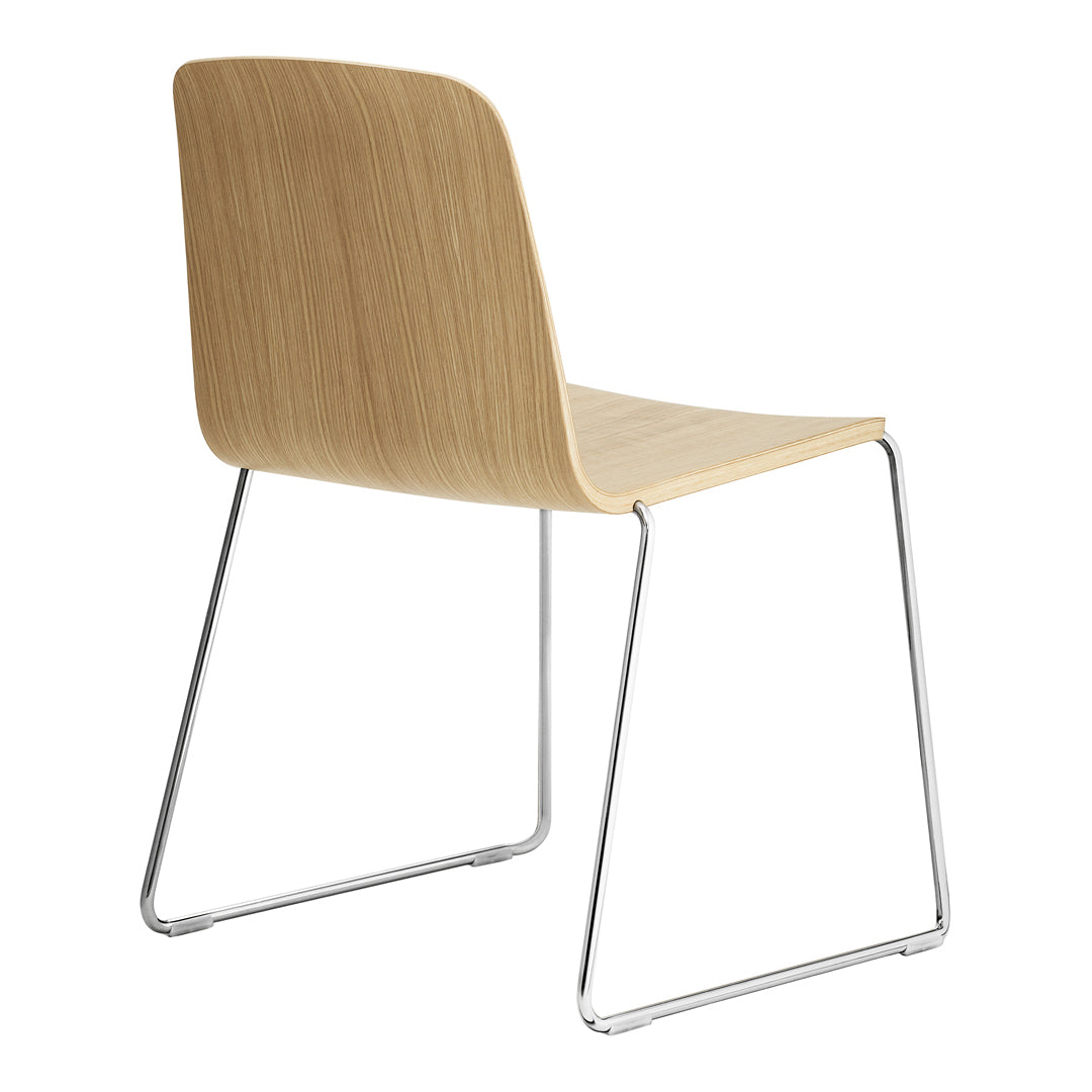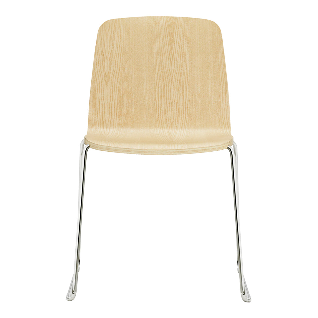 Just is a simple and understated stackable shell chair with lots of personality and character that is as beautiful when seen from below as from above. The frame is discretely tucked into the chair's molded shell, and the shell's tapering thickness gives it a friendly and welcoming expression. Just Chair comes in a veneer version in a distinctive black or in natural, with a striking colored edge in black, red or grey. Just Chair is also available with upholstery in quality four textiles and durable leather, adding a whole new dimension to the chair. The chair fits into most furniture schemes, and is ideal both around the dinner table and in the kitchen.