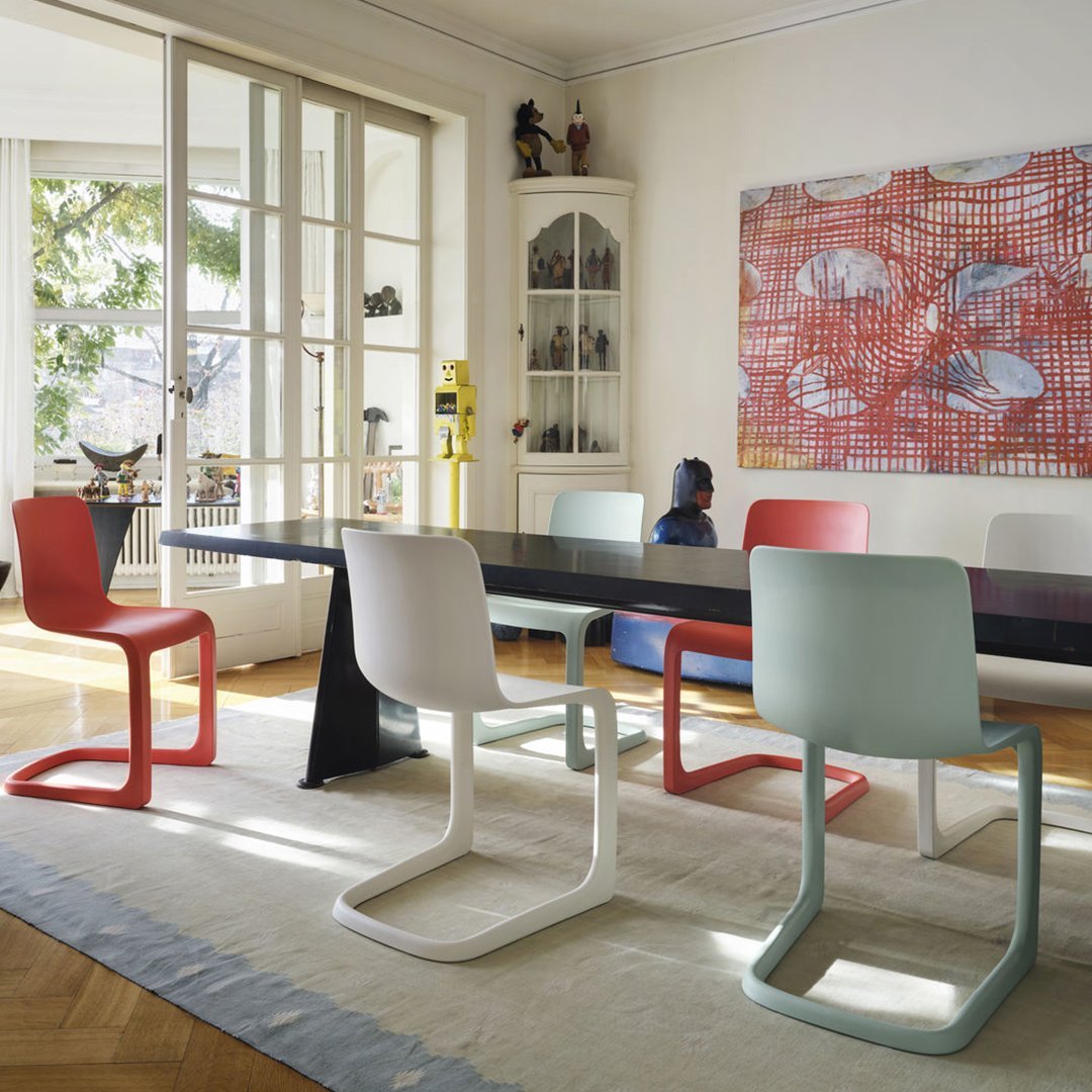 Vitra and Jasper Morrison have successfully translated the basic principle and distinctive comfort of the classic cantilever chair into an ergonomic model made of 100% recyclable polypropylene: EVO-C.