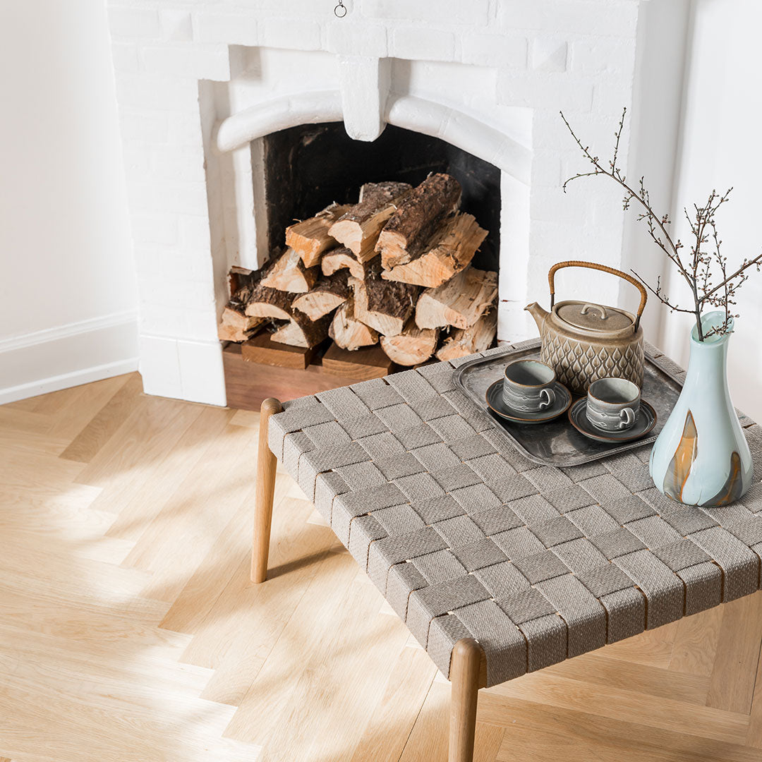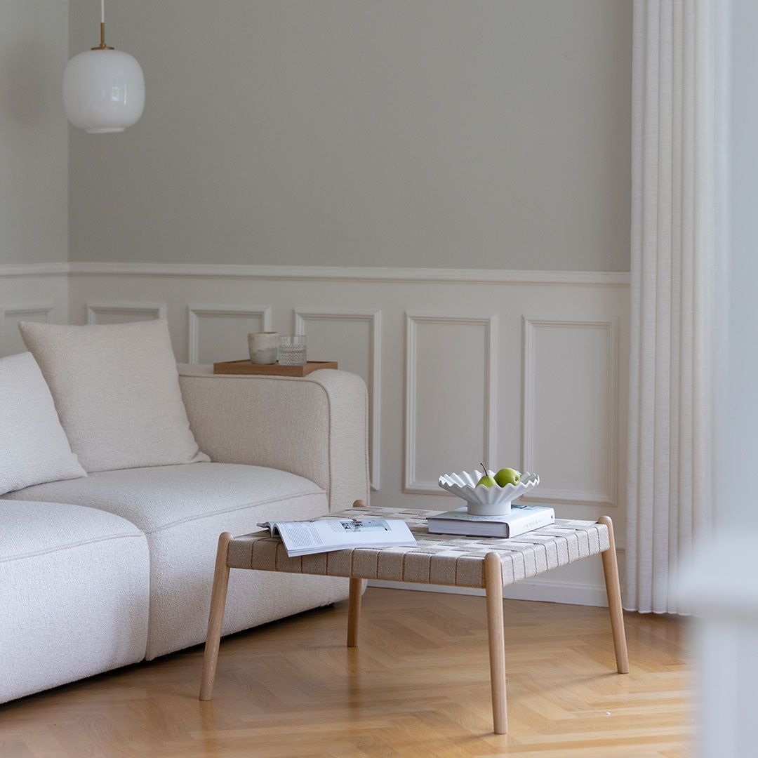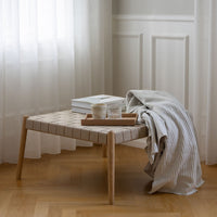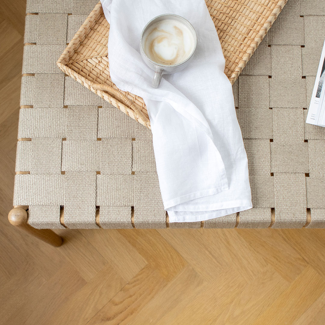 The natural beauty of the oak and the structure of the natural linen belt fit into both classic, minimalist and maximalist interior themes. The artisanal care and attention put into shaping and working the oak results in unique details and a handcrafted quality and finish that differs from mass-produced furniture.