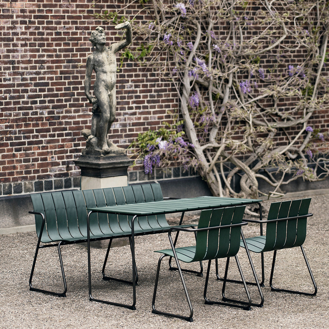 The Ocean Collection is a reimagined table-and-chair collection (originally designed in 1955) in ocean waste plastic, combining innovative solutions to prevent pollution of the world’s oceans - with one of the 20th century’s most renowned designers, Nanna Ditzel. The series is characterized by its light structure with repeated slats and metal frames, made and tested for outdoor use.