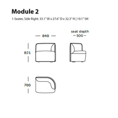 Module 2 (1-Seater, Side Right): 33.1" W x 27.6" D x 32.3" H | 19.1" SH