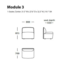 Module 3 (1-Seater, Center): 31.5" W x 27.6" D x 32.3" H | 19.1" SH