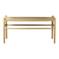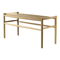 The piano bench comes in black lacquered oak and natural oak, both with natural wicker. It also has many uses in a home without a piano: in the dining room, in the hallway or other places where a small seating area is needed. The bench has been relaunched on the occasion of Jorgen Bækmark's 90th birthday, where the emphasis has been placed on the wicker furniture that both characterizes his time, but at the same time is so timeless and current.