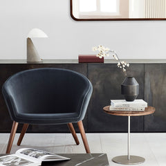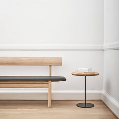 For milan-based, Japanese designer Keiji Takeuchi, simplicity is the path to sophisication. See in Pal's solid wood table top crafted to resemble a serving tray and slim stem and base in stainless steel, with the option of a powder-coated base. Solid wood and well-crafted steel are rich materials that will acquire a beautiful patina over time. What's more, they blend seamlessly with other materials and color schemes in virtually any interior. A variaty of table top sizes and the ability to choose a preferred height makes Pal a versatile design you can personalize. Takeuchi often describes his designs as "living objects", referring to aspects not necessarily visible or tangible. But rather, something you can sense from their presence. The collaboration with Fredericia started in 2019, when Takeuchi designed a bench produced by Fredericia for the Fiskars Art and Design Biennale. Pal is the first commercial product in their collaboration.