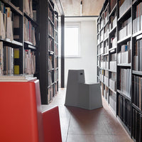 The Stool-Tool resembles a monolithic sculpture and invites users to spontaneously try out its many options. Intuitive use reveals numerous seating positions and possible functions as a small work or storage surface. Lightweight and stackable, the Stool-Tool also has a cutout handle that makes it easy to pick up and store away.