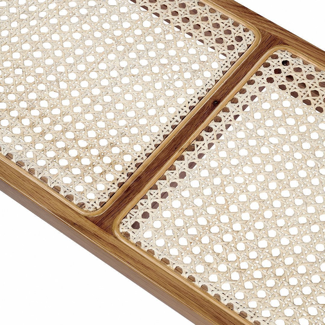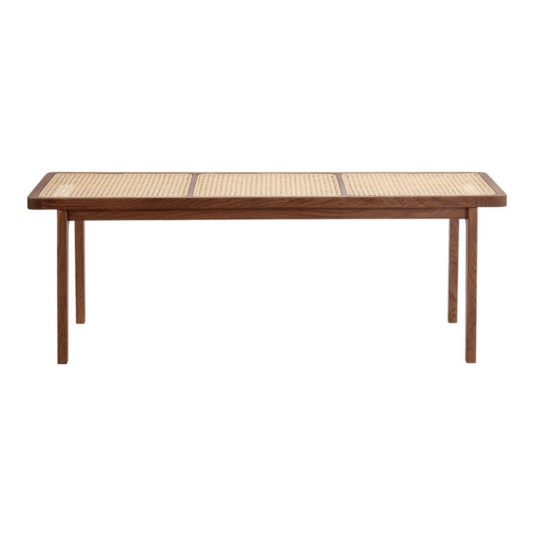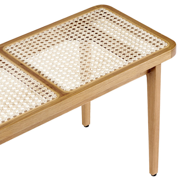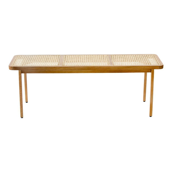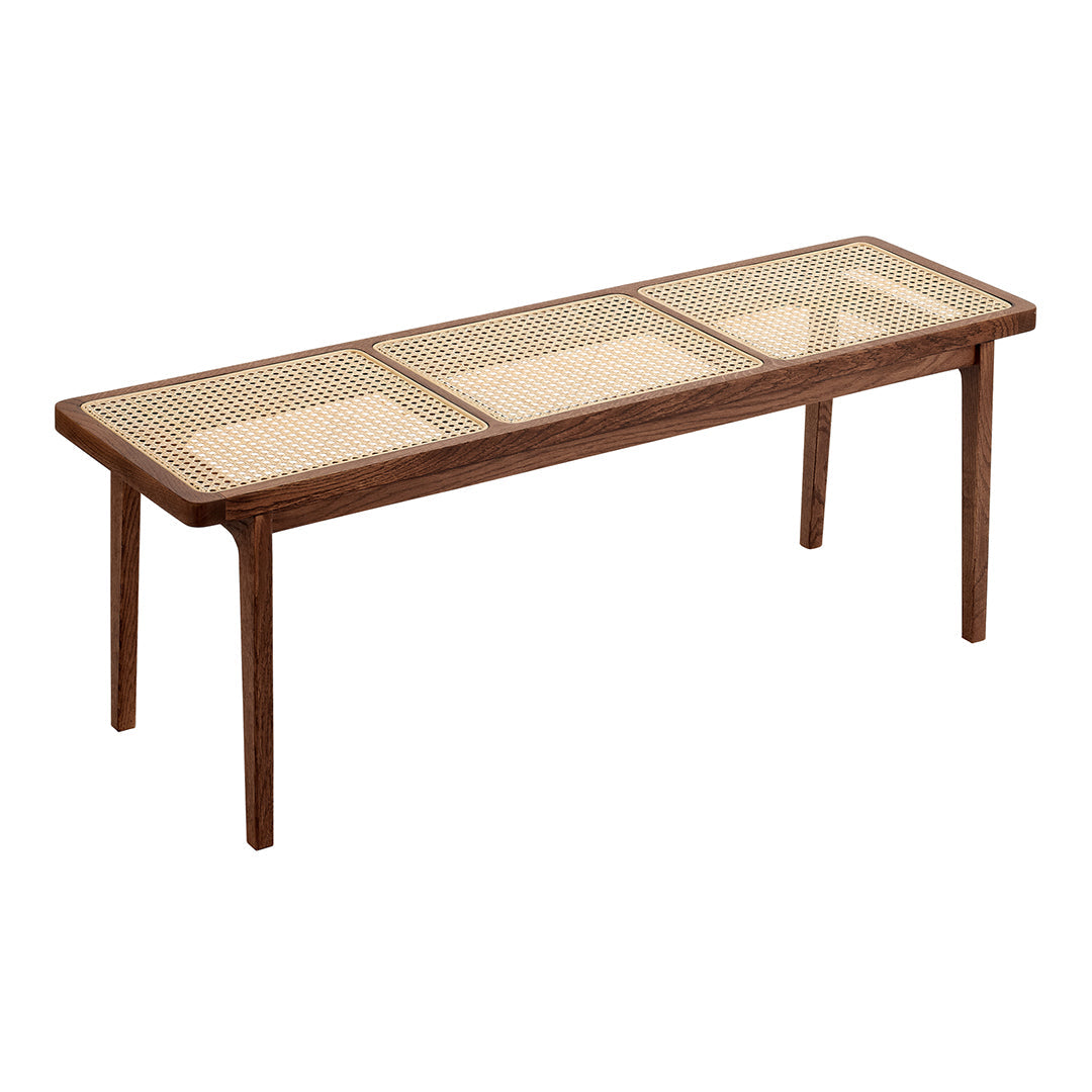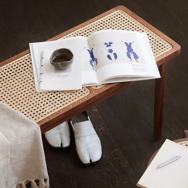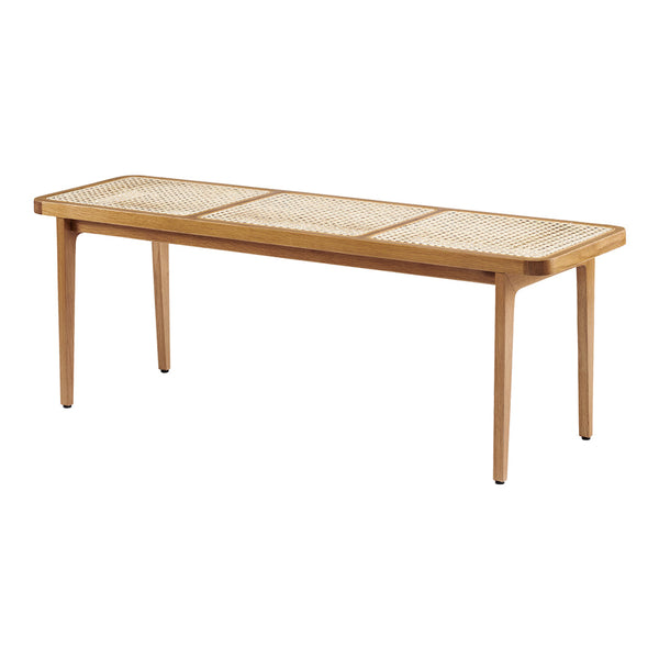 The Le Roi is a bench made from solid oak with inlaid French rattan mesh. Le Roi is the French word for King, and the series is a minimalistic interpretation of rattan furniture from the French colonial time, merged with well known Scandinavian furniture archetypes, such as the three-leg circle table and the rectangular bench.
