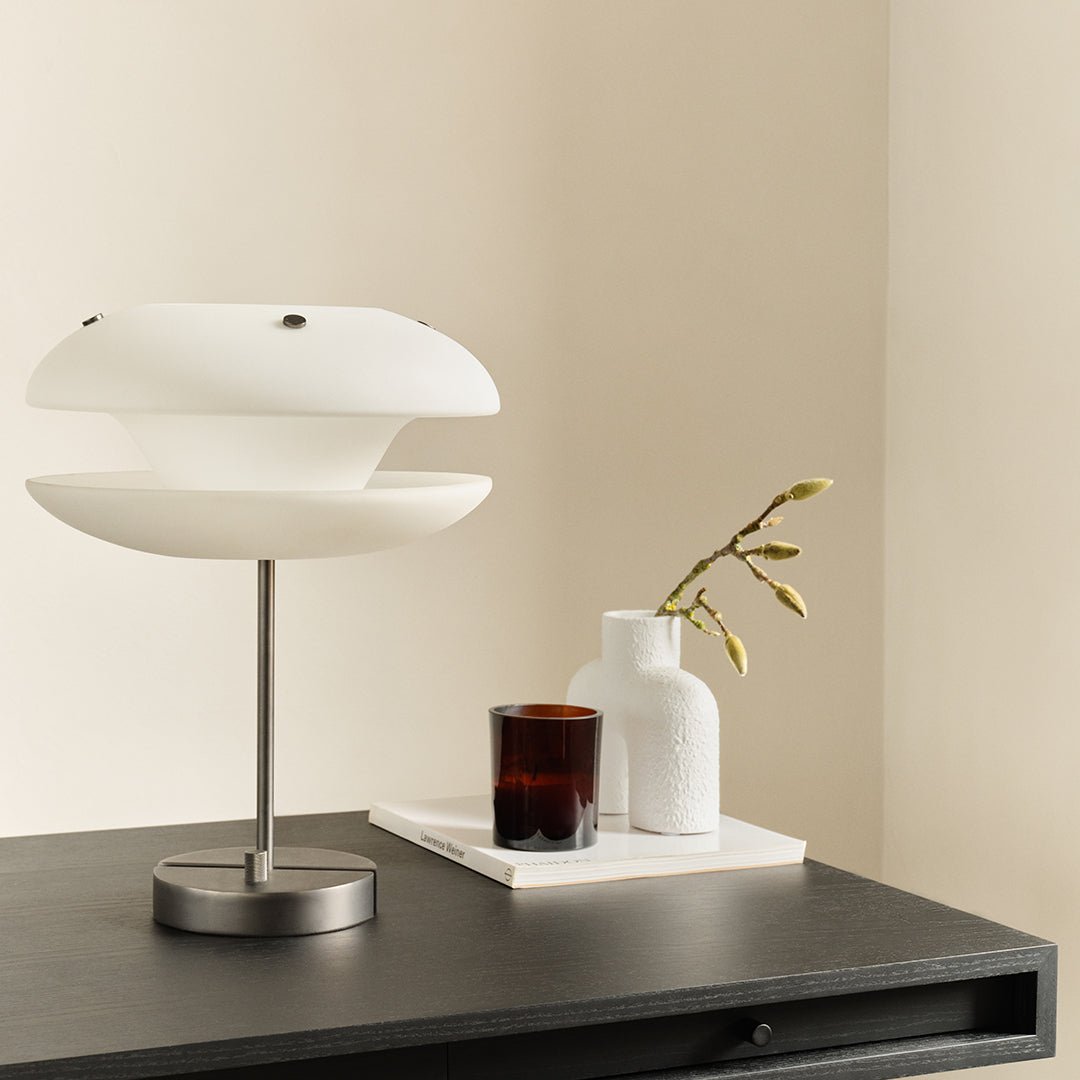 With its pure and simplistic design, the 60s inspired JFK Office Desk is designed for the stylish home office. The name is a tribute to a classic Danish design given as a present to president John F. Kennedy during the 1960s. The desk has a slim tabletop of ash veneer with three inbuilt drawers and stands elegantly positioned on top of four conic shaped black powder-coated aluminium legs. Each drawer has a small knob with knurled texture, as a reference to old Jaguar radio buttons. The tabletop has a hidden space for a power bank, making it easy to power a laptop, table lamp or smartphone. The cable from the power distributor can be wired through a small hole in the legs, creating an elegant desk without messy cables on the floor.