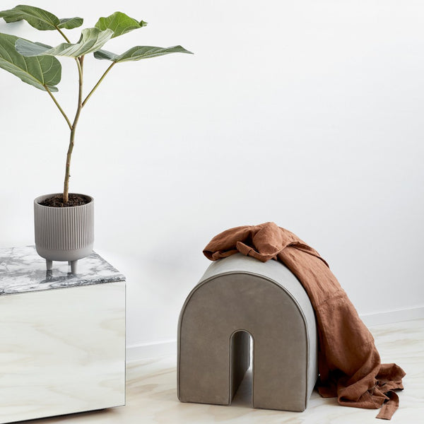 Poufs are in themselves a graphic element built up around simple principles. The Curved Pouf is made of exclusive aniline leather and the rounded shape of the pouf and its distinct design triggers our fascination of geometry.