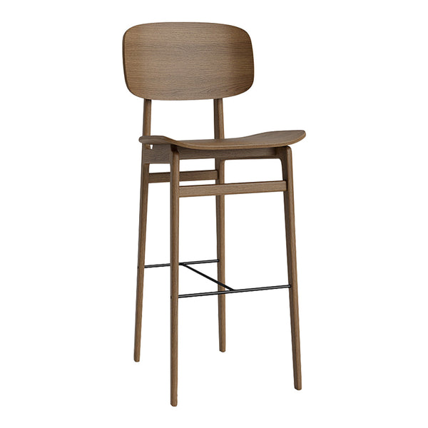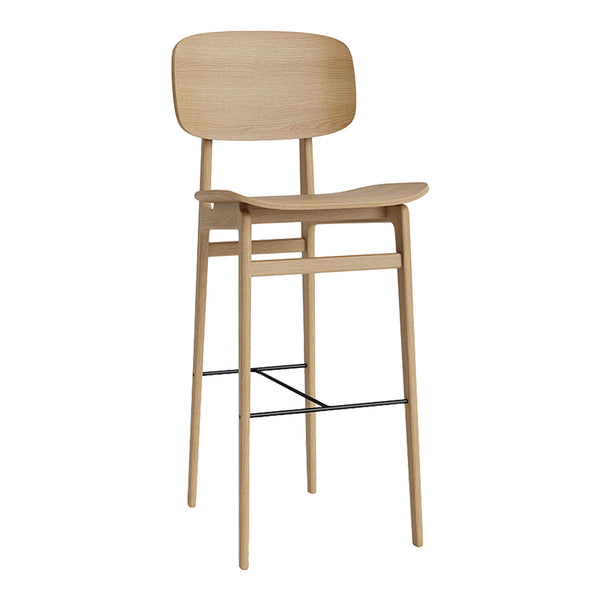 The NY11 Bar Chair is a bar version of the popular NY11 Chair which is inspired by traditional Danish elementary school chairs. Just like a school chair, it had to be both comfortable and very durable. The Bar edition takes it to new heights. The NY11 Bar Chair has a frame hand-crafted from solid oak, a seat of laminated oak veneer and a steel footrest for ultimate comfort. With its sleek and sophisticated design, this chair is the perfect addition to any living space, bar or restaurant.