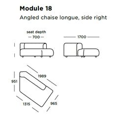 Module 18 (Angled Chaise Lounge - Side Right): 66.9" W x 78.3" D x 26.4" H