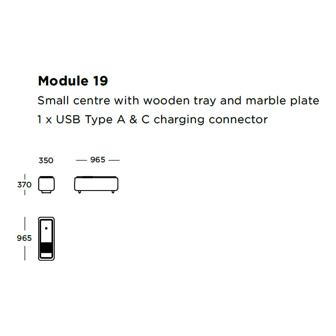 Module 19 (Module w/ Light Oak Tray & Marble Plate): 38" W x 38" D x 14.6" H