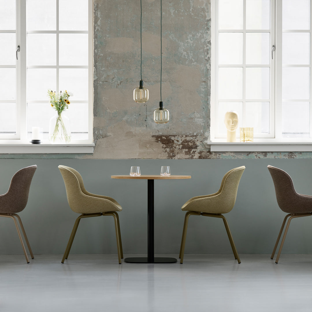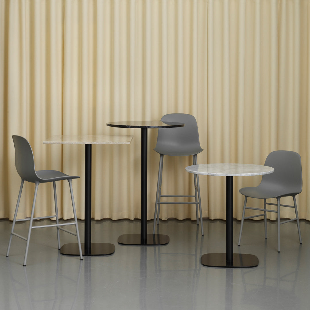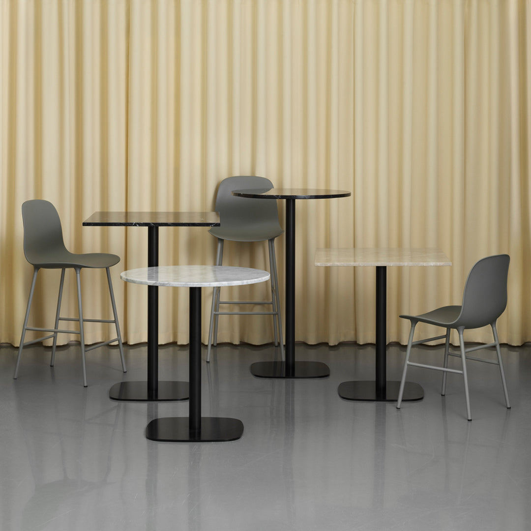 The tables are adjusted to the Form chair and the two heights of Form barstools so that they complement each other proportionally. The Form café table is particularly well suited to the decor of bars, restaurants, lobbies and receptions, but will also work perfectly in a kitchen's little eating area in private homes./p>