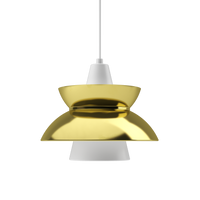 Originally introduced in the 1950s, the Doo-Wop Pendant was designed in close cooperation between the Navy Buildings Department and Louis Poulsen. The pendant was used for many years in the builidngs of the Navy for many different applications such as cateens and offices. The Navy Pendant, which was the name at that time, was widely used because of the unique lighting properties and utility. Not until the early 1980th the product was taken out of the Louis Poulsen catalogues. In recent years, more and more of the old editions have been sold again through antique stores and auctions. This has caused a demand and Louis Poulsen has been asked to re-launch the products. The new version is very close to the original. The shades are still and spun by hand and completed with the fine rolled edge which gives the shades a special opticial volume. The brass variant challenges the craftsman as it is spun from a solid brass plate and appears polished.