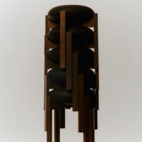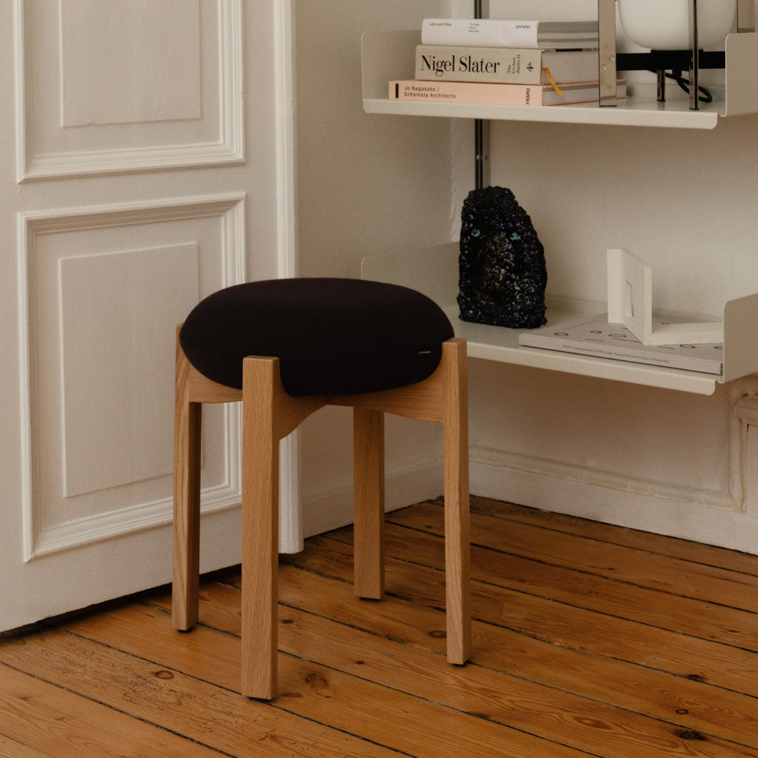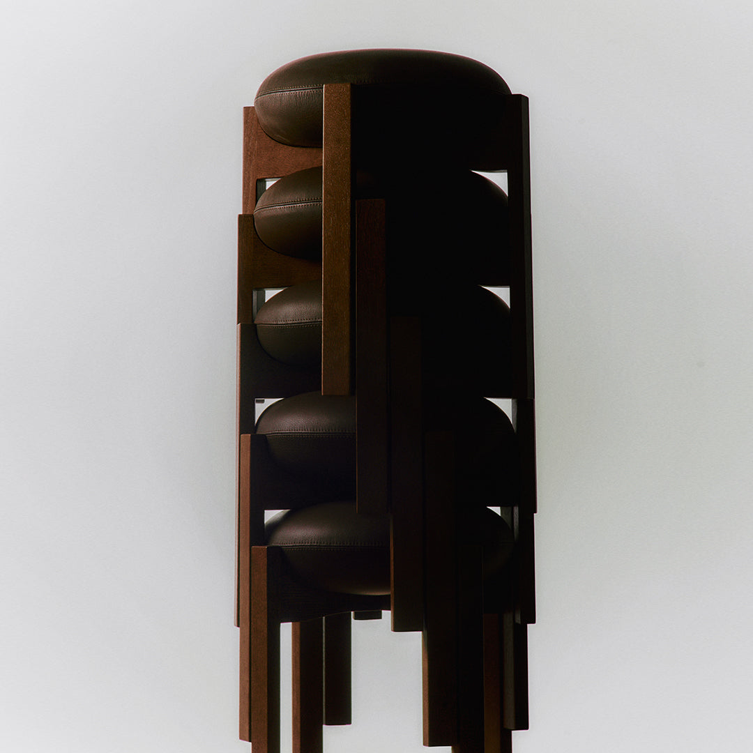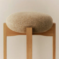The sculptural Pioneer stools combine good seating comfort, functionality and a sculptural design language that elegantly combines the seat’s soft and round design with the wooden frame’s sensuality.