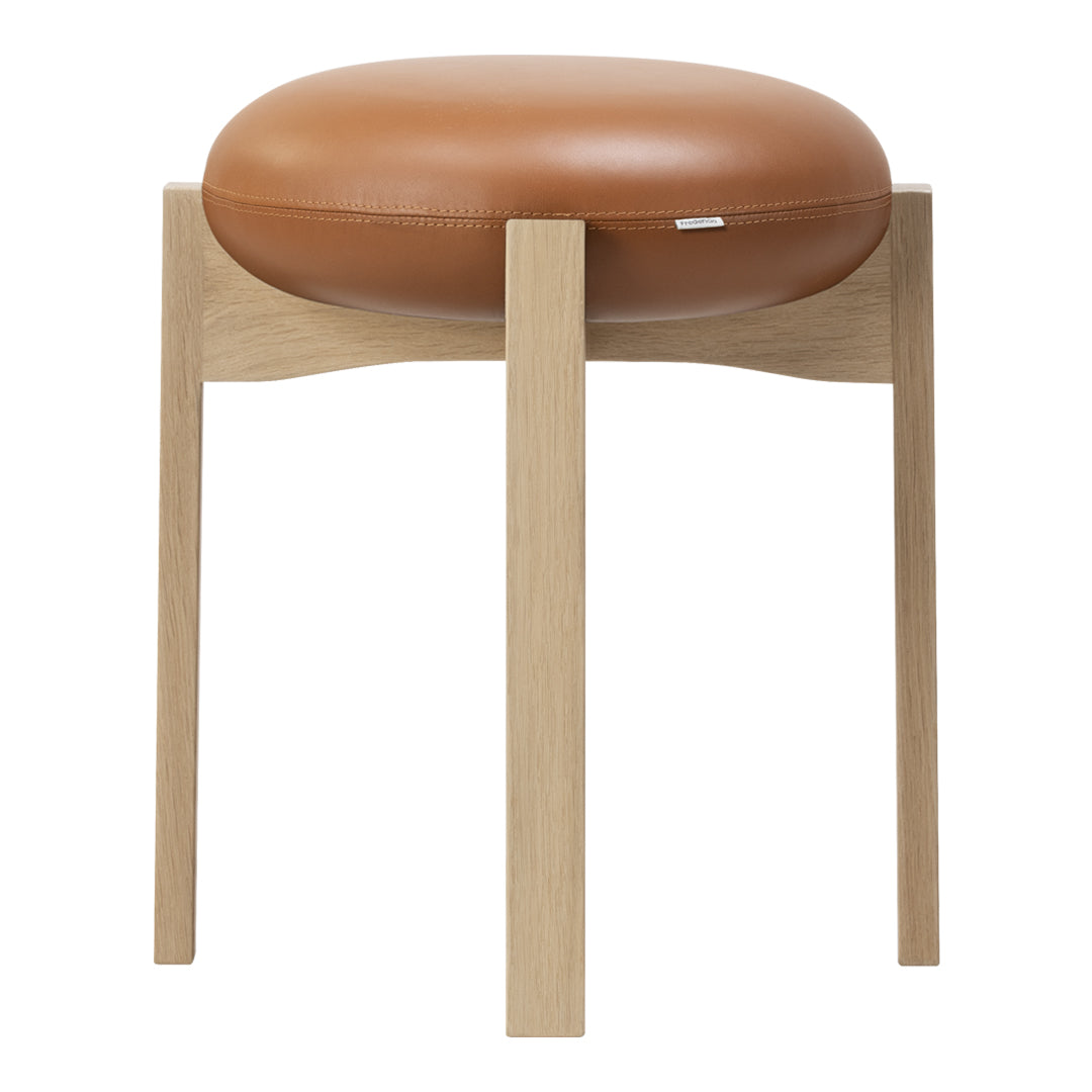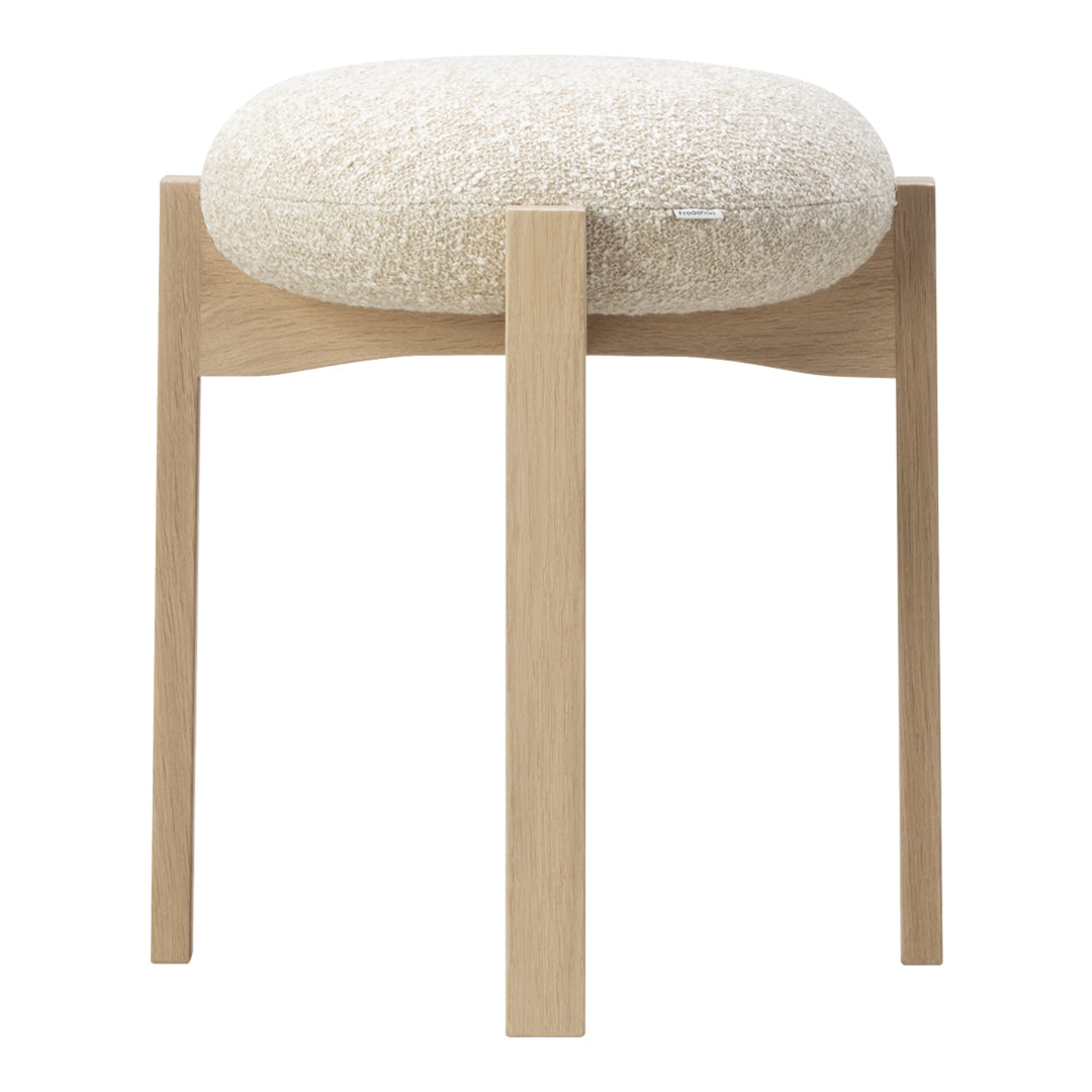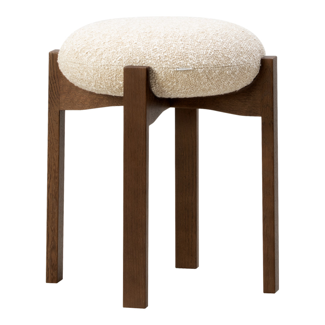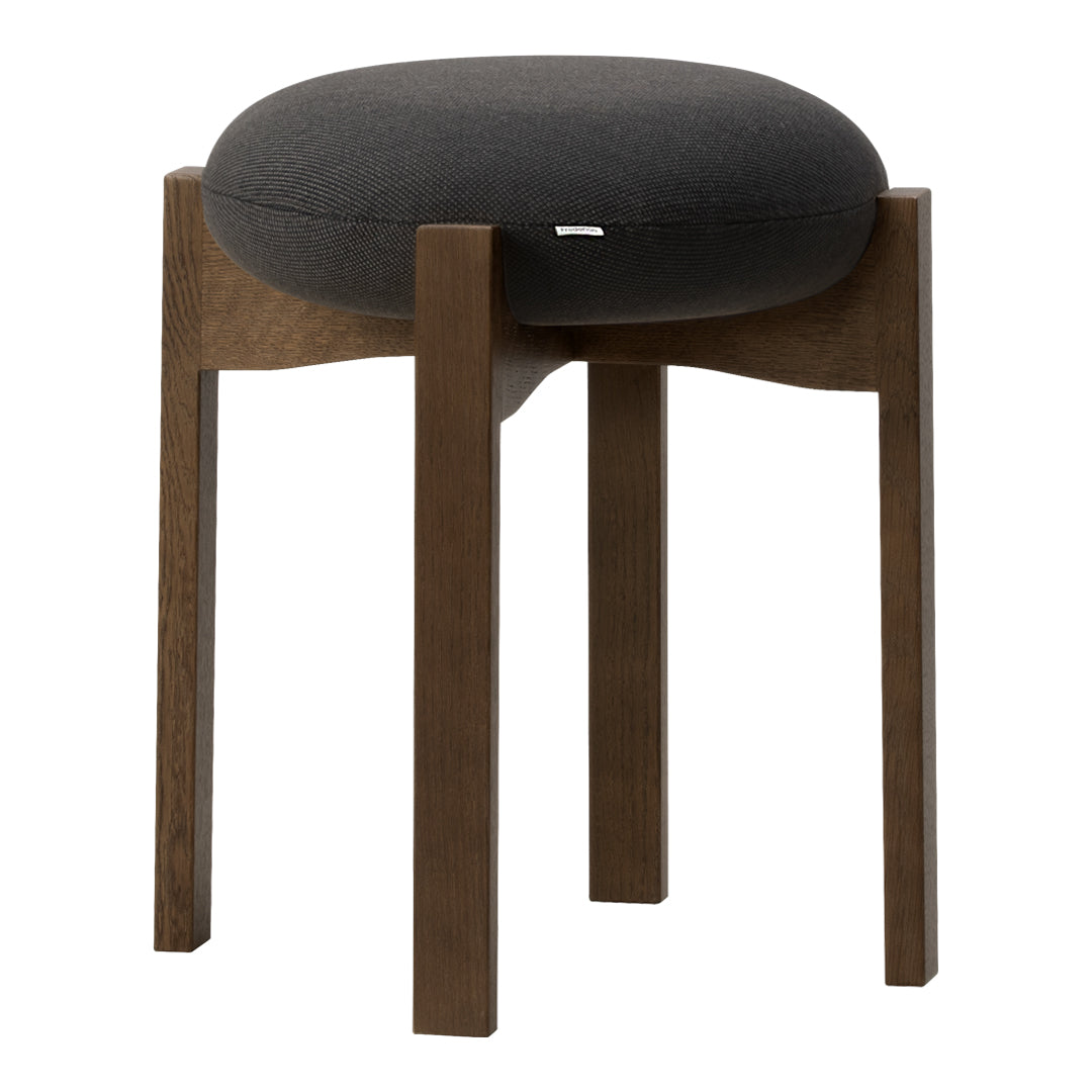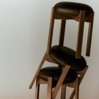 The chair’s simple, unique and distinctive combination of shapes and materials is a modern take on Scandinavian design that combines functionality with Bruun’s recognisable sculptural minimalism. The four vertical legs of the wooden frame are united in a cross composition with elegant indentations, where the light, the upholstered seat cushion, is placed on top. In contrast, the detailed indentation on the underside completes the overall artistic impression.