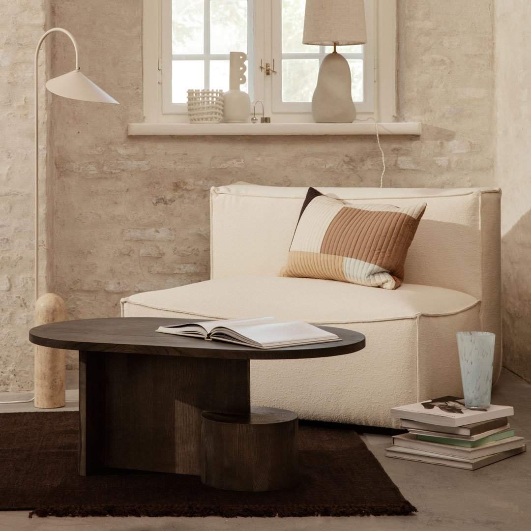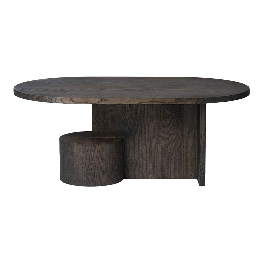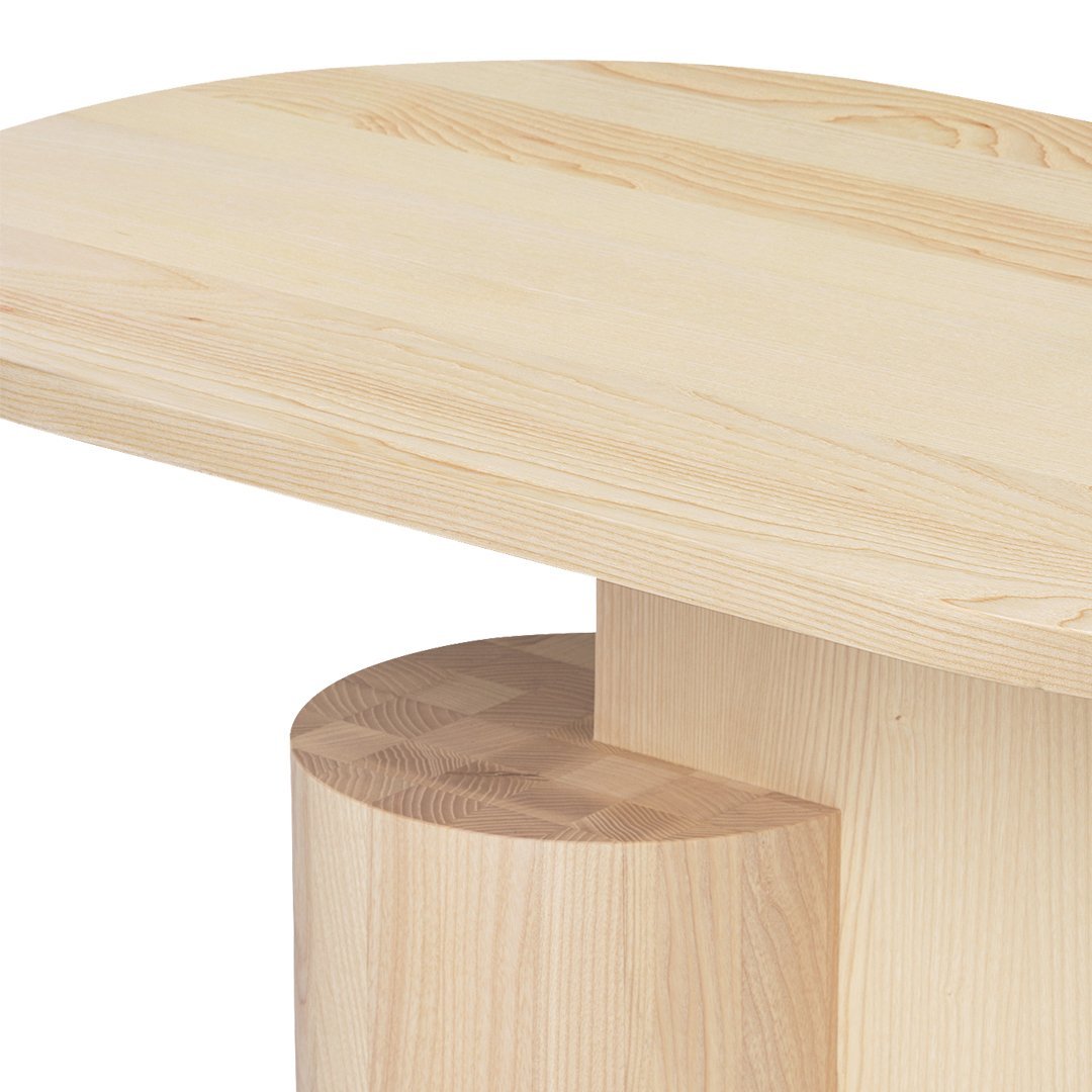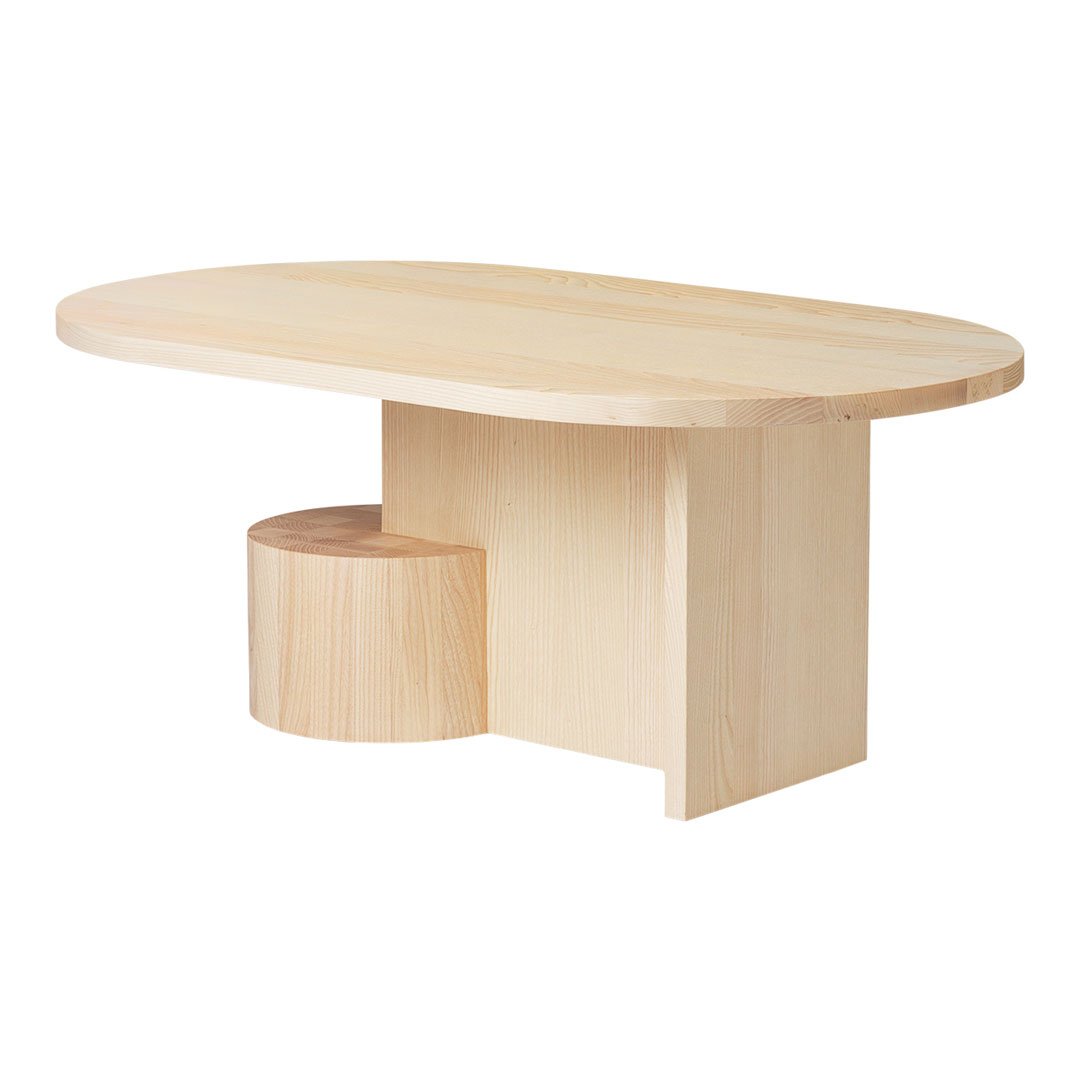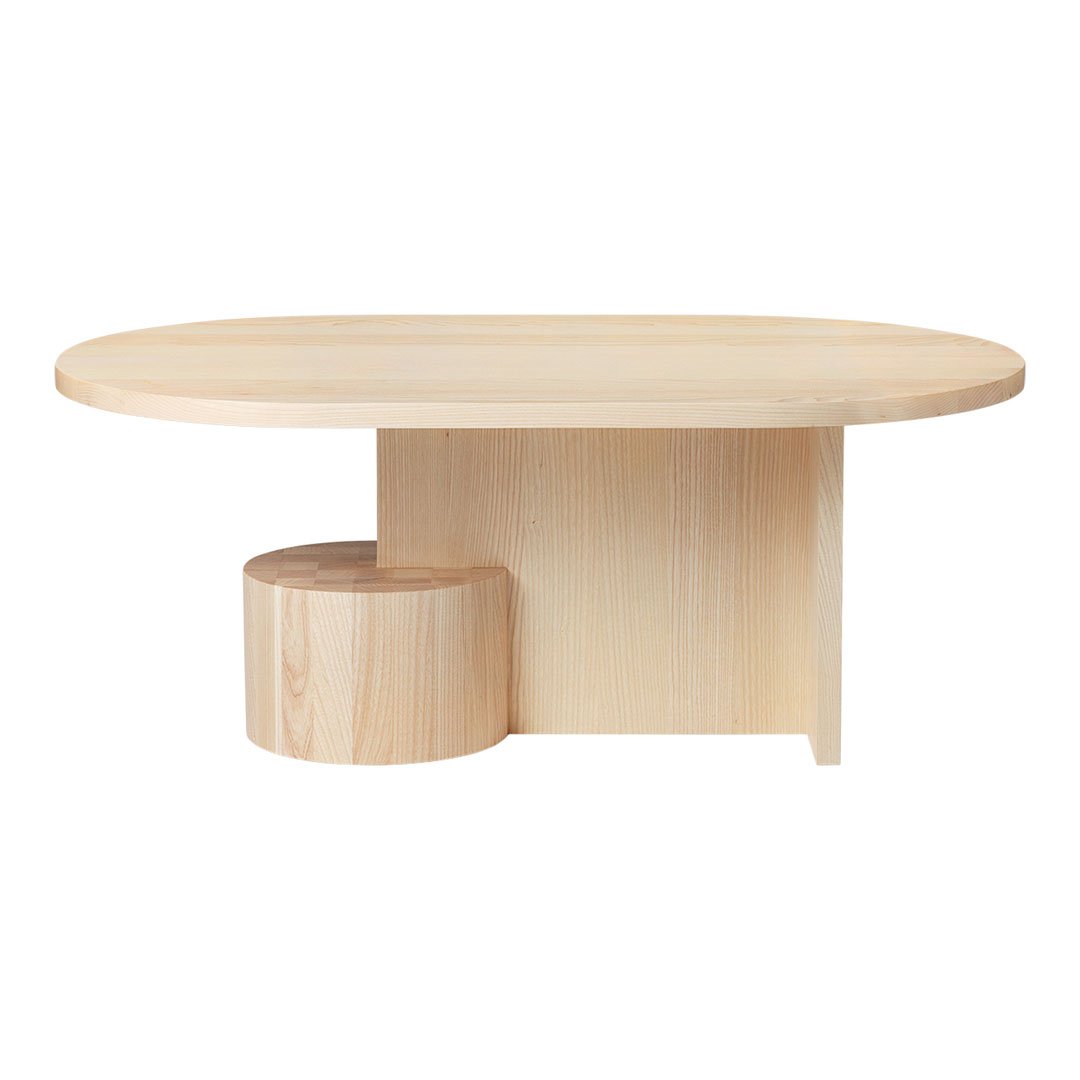 Crafted from solid ash, the Insert Coffee Table is a sturdy yet sculptural piece. Playing with multiple shapes, the oval top rests lightly upon two geometric joints that are anchored by a heavy, cylindrical base. The table is a subtle piece of art in your home that is matched by its functionality as a coffee table.