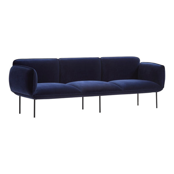 Nakki is a distinctive sofa, which is meant to be a cheerful personality in the living room. The sofa has ample and firm padding for a comfortable sit. Its square form and straight legs are contrasted with its soft shapes on the seating. The rounded edges and a minimalistic take on classic sofa legs give Nakki its characteristic and loungy feel. Fire retardent foam is available upon request. Please contact us for further information.