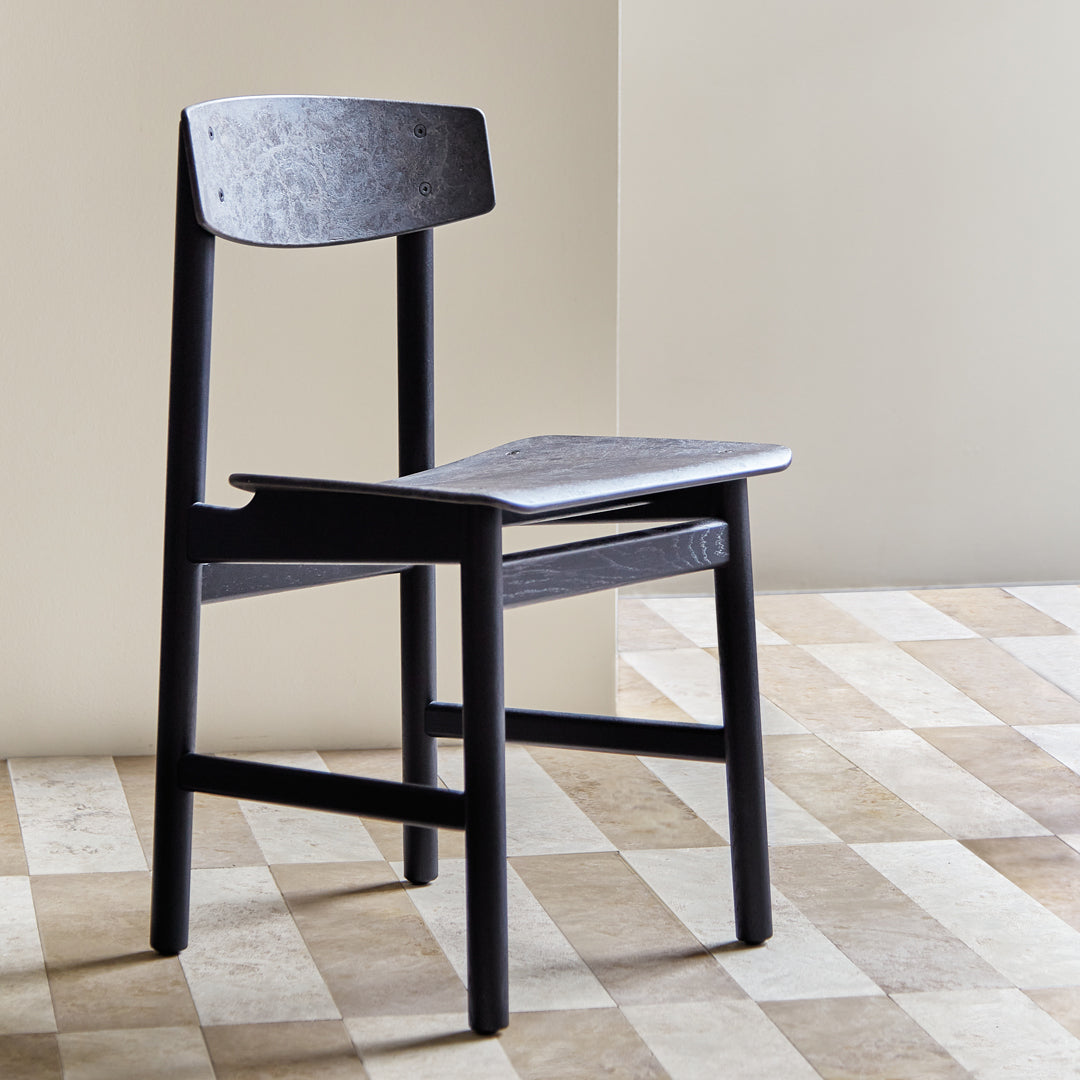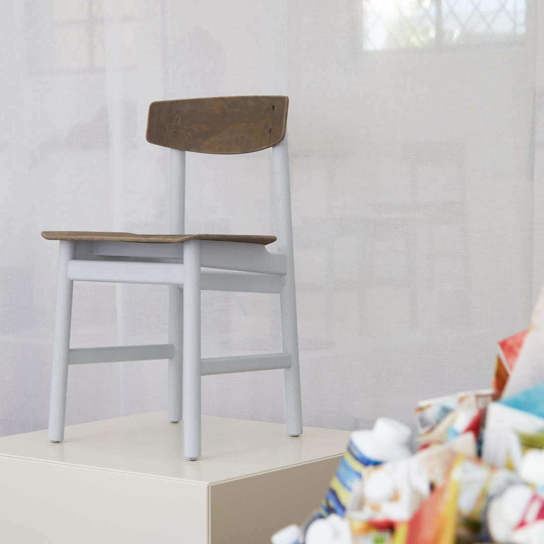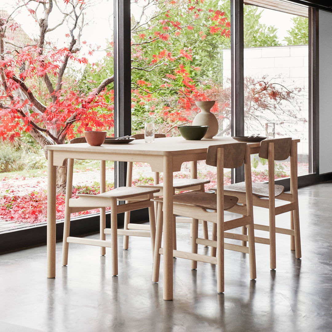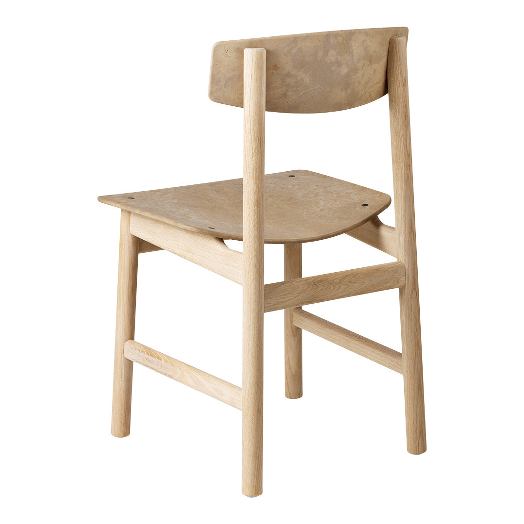 Conscious Chair 3162 designed in 1958 by the renowned Danish furniture designer and architect Børge Mogensen and Esben Klint. The chair is made of FSC wood and Matek, where an innovative technology allows us to recycle fiber-based waste materials with recycled plastic waste from GROHE. It is the first time that a Børge Mogensen design has been relaunched in a different material than the original. The chair is available in six versions.
