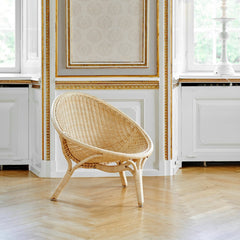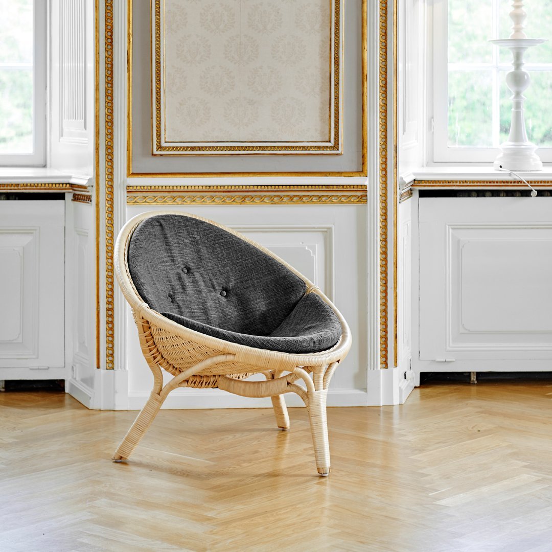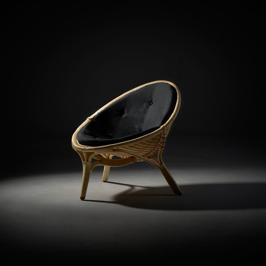 Our Icons collection revitalizes iconic pieces of furniture from some of Europe's most important architects and designers. Nanna Ditzel's experimental approach to design resulted in the Rana Chair, which is dazzling in both its simplicity and its ingenuity. Designed in 1951, this three-legged piece was one of the first to use the concept of a one-piece shell on a frame, and its strength and curves beautifully highlight the qualities of the rattan.